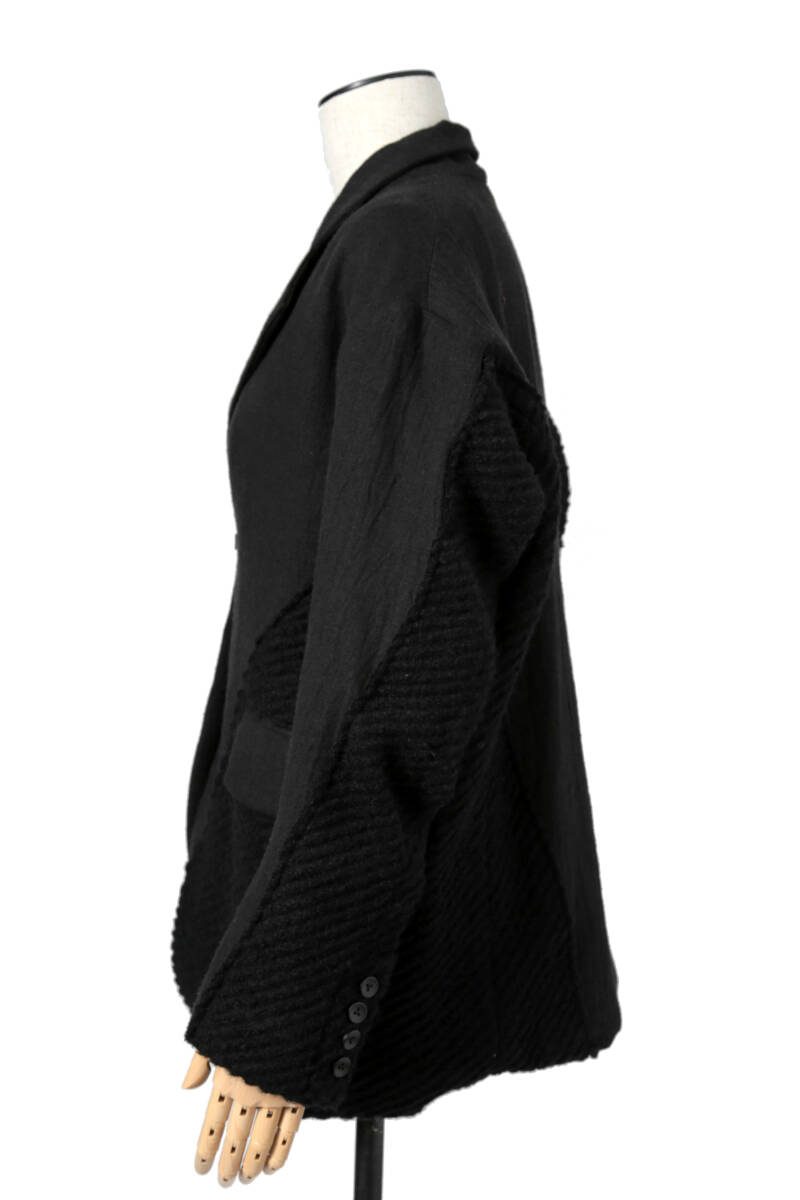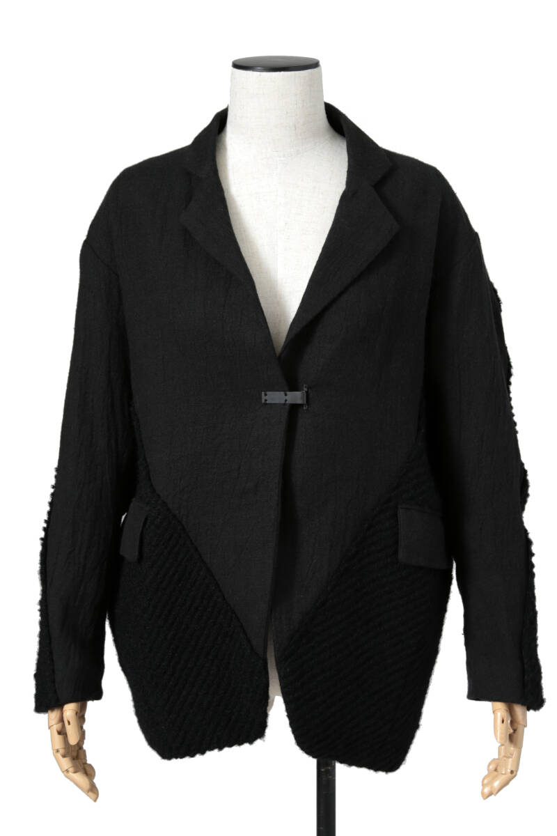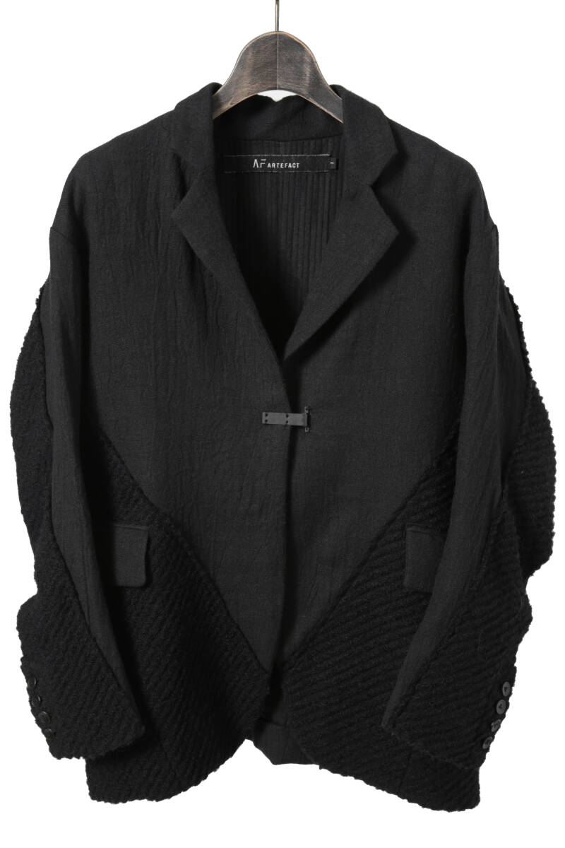 希少 新品 A.F ARTEFACT アーティファクト / リネンウール / ニット切替 オーバーサイズ ジャケット / size 1 (BLACK) ユニセックス