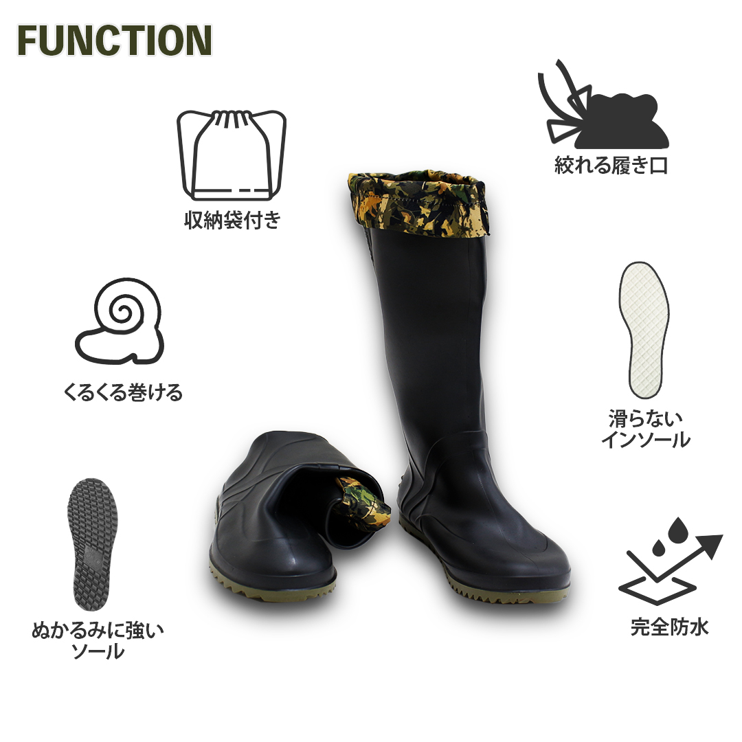 【商品名】キャプテンスタッグ くるくる巻けるレインブーツ