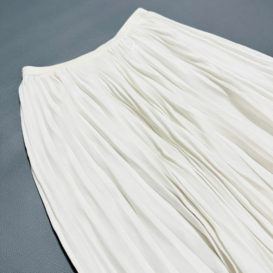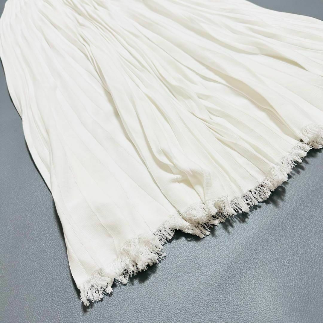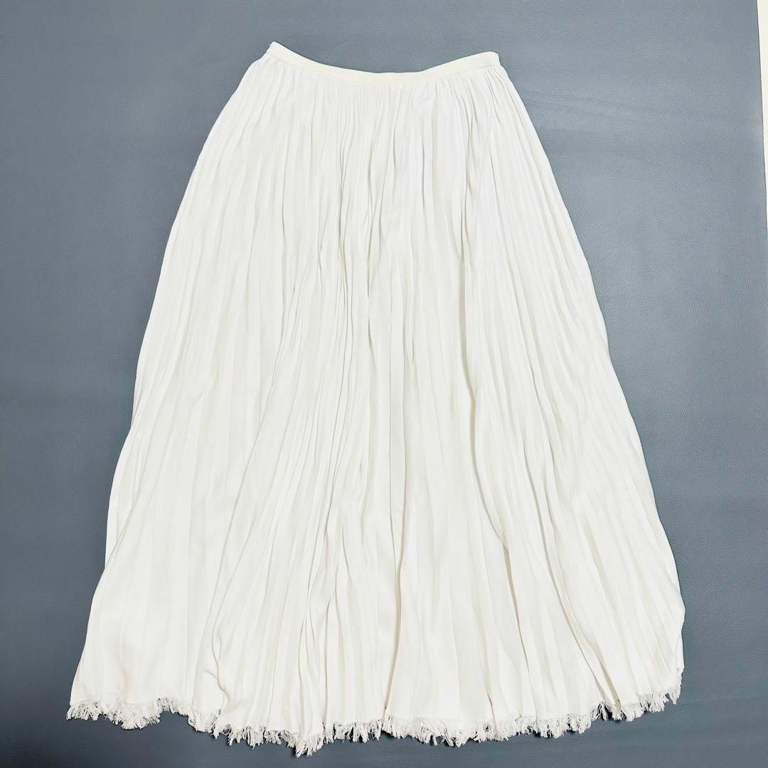 美品 ドゥロワー コットン フリンジ プリーツ スカート マキシ丈 ホワイト