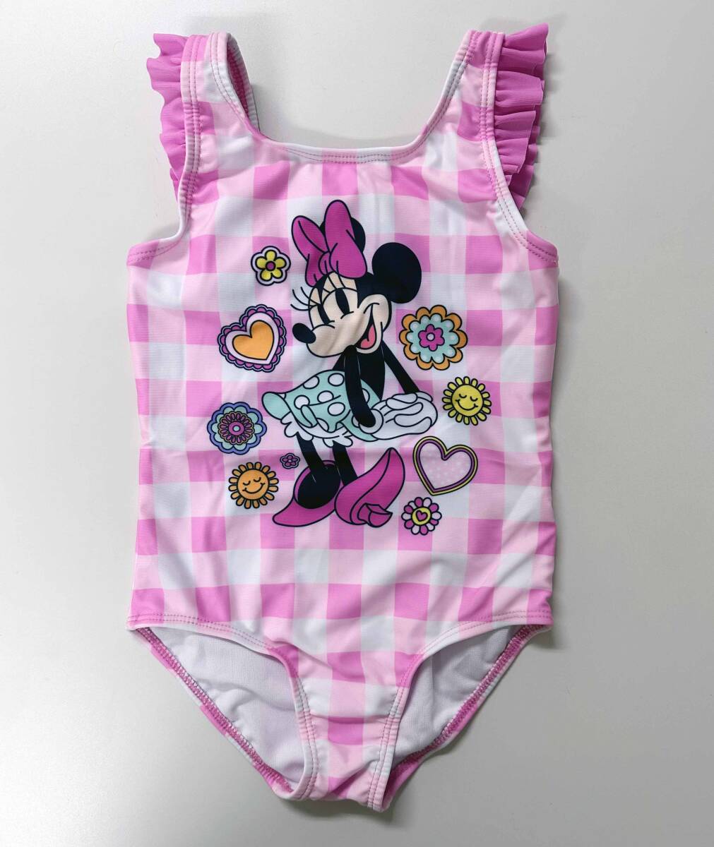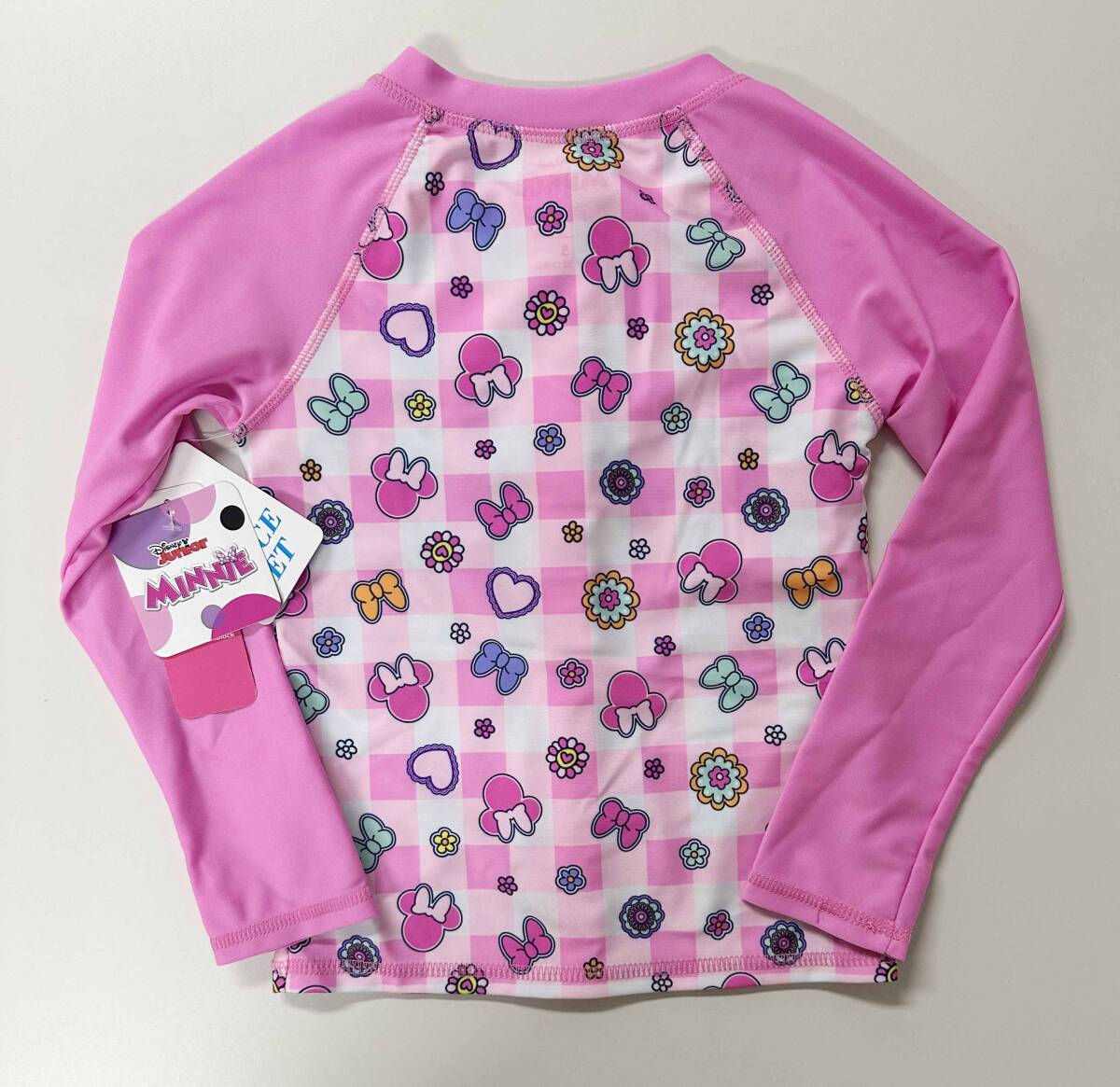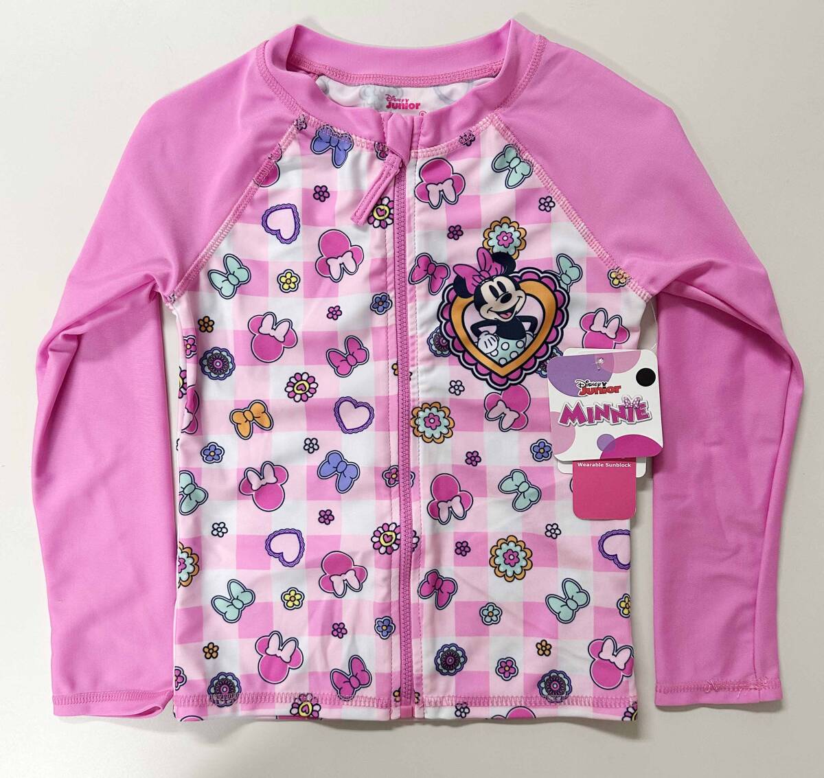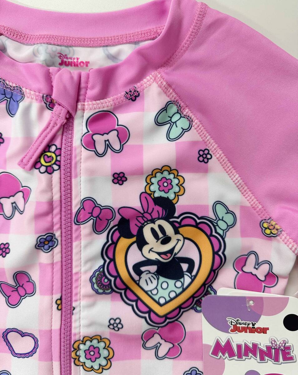 新品 120cm ★ ディズニー ミニー 水着 長袖 ラッシュガード セット 5T 110 ピンク フリル ガールズ コストコ UV加工 DISNEY ワンピース