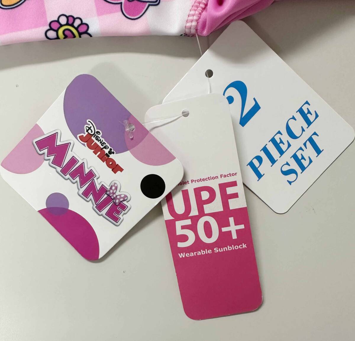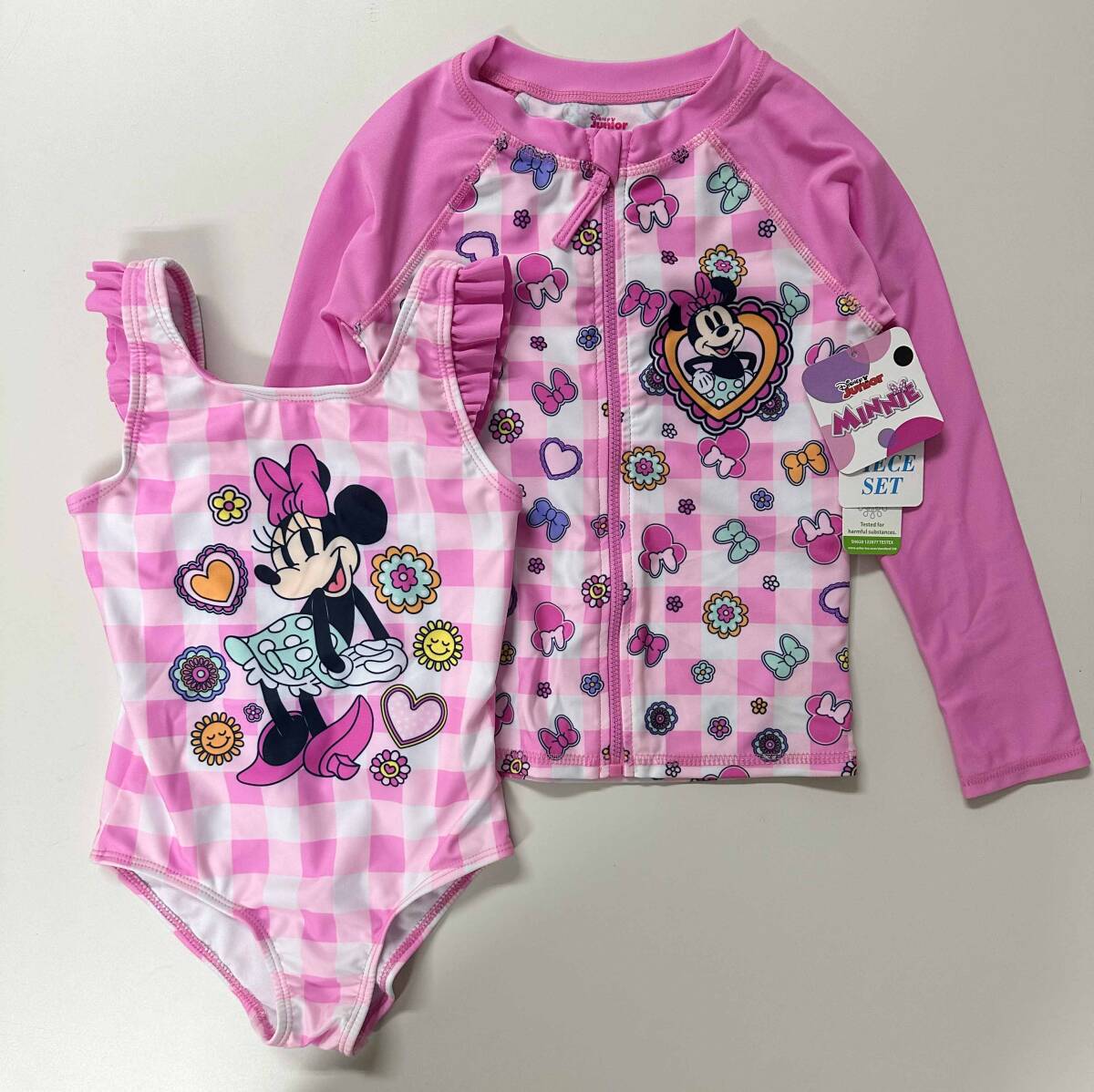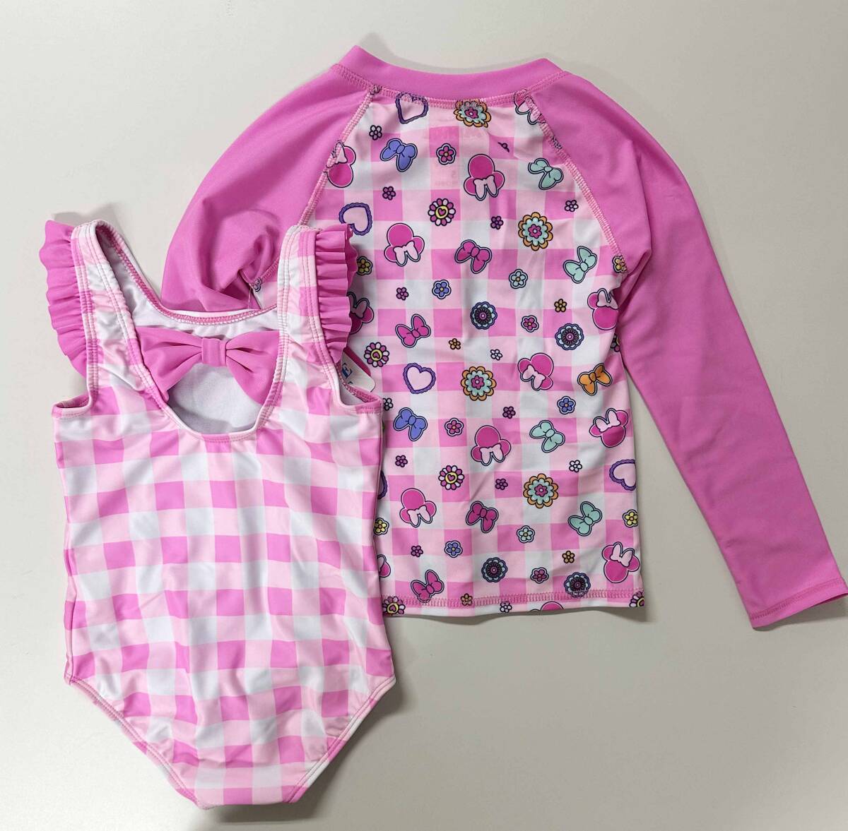 新品 120cm ★ ディズニー ミニー 水着 長袖 ラッシュガード セット 5T 110 ピンク フリル ガールズ コストコ UV加工 DISNEY ワンピース