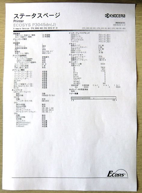 カセットトレイ、手差しトレイ共に印刷動作確認済み。 両面連続印刷動作確認済み。 USB、LAN動作確認済み。 |