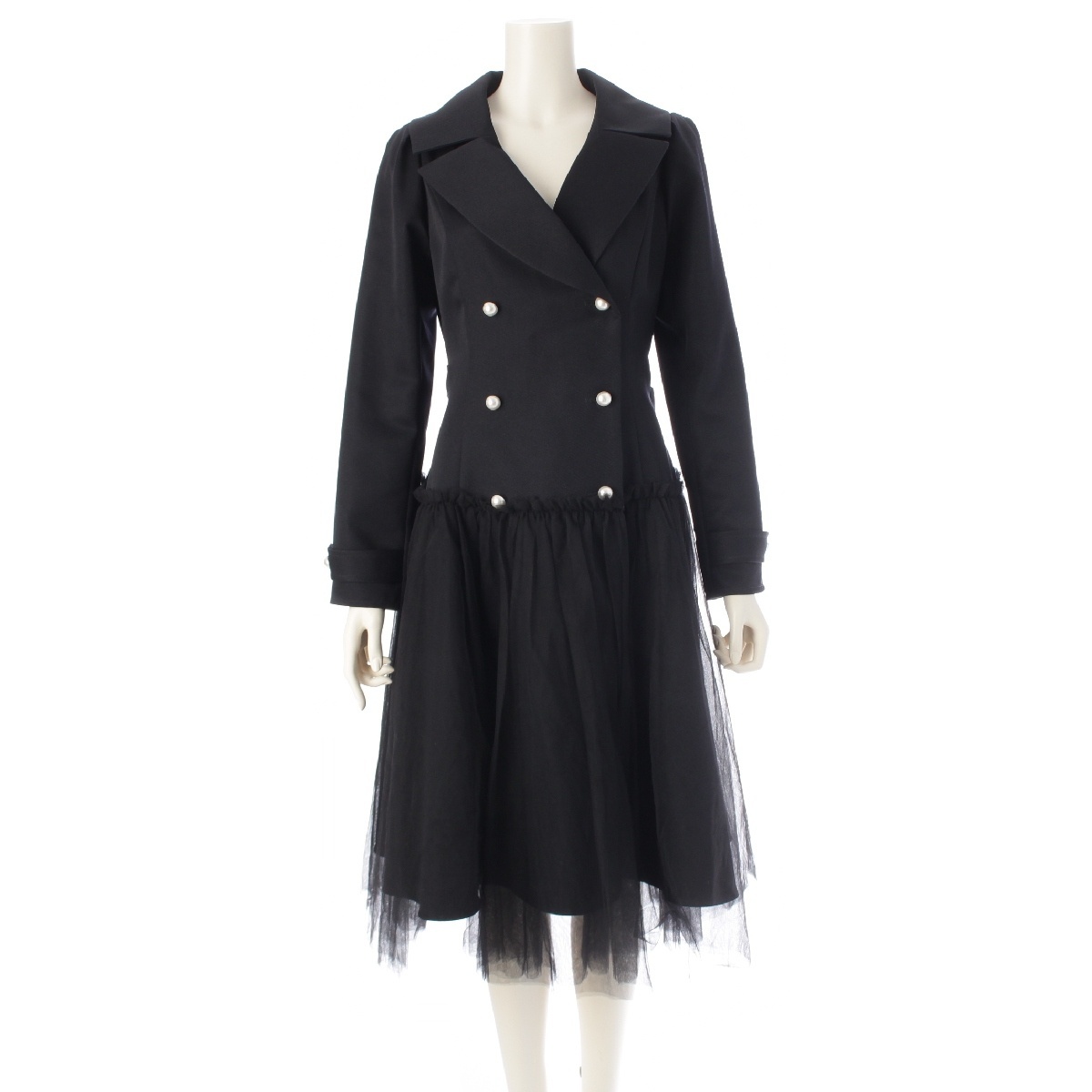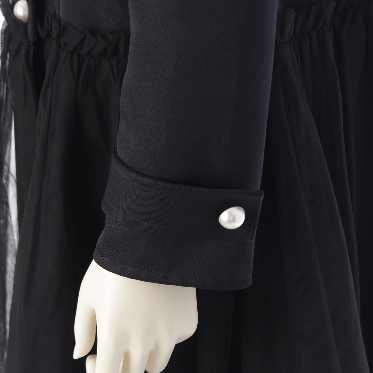 襟に汚れ/変色、スカート部分(チュール)に汚れ/穴あき、パール部分に傷、袖、袖口に汚れ、背中に汚れ、