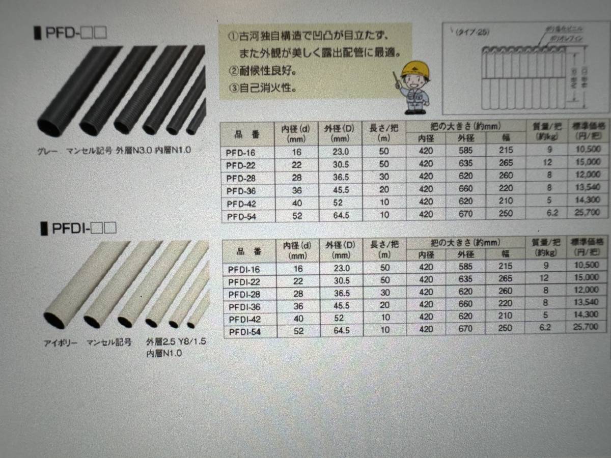古河電工PFD管 28  、30Mアイボリー色