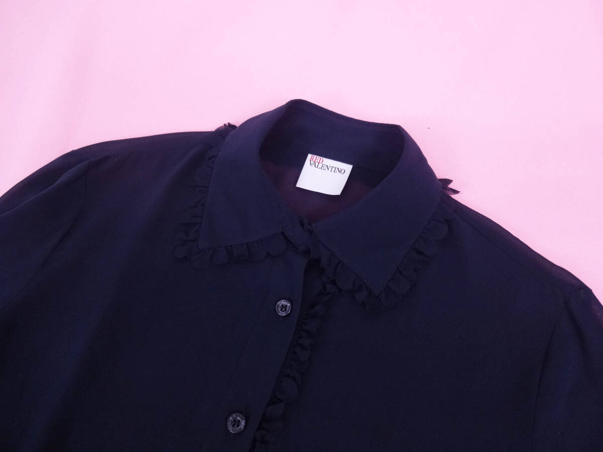 RED VALENTINO レッドヴァレンティノ シルクシフォン素材 フリル飾り 襟付きブラウス ダークネイビー 40 新品未使用品