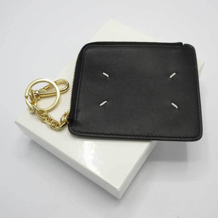 ■メゾンマルジェラ 財布 カードケース Maison Margiela 11 レザー 4ステッチ キーチェーン付カードケース コインケース S56UI0205 P4985 T8013 (ブラック) アウトレット レディース メンズ 男女兼用 ユニセックス