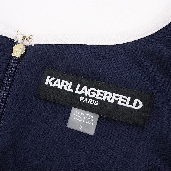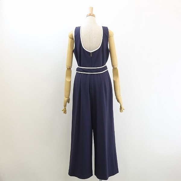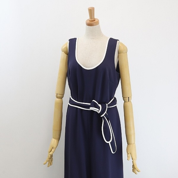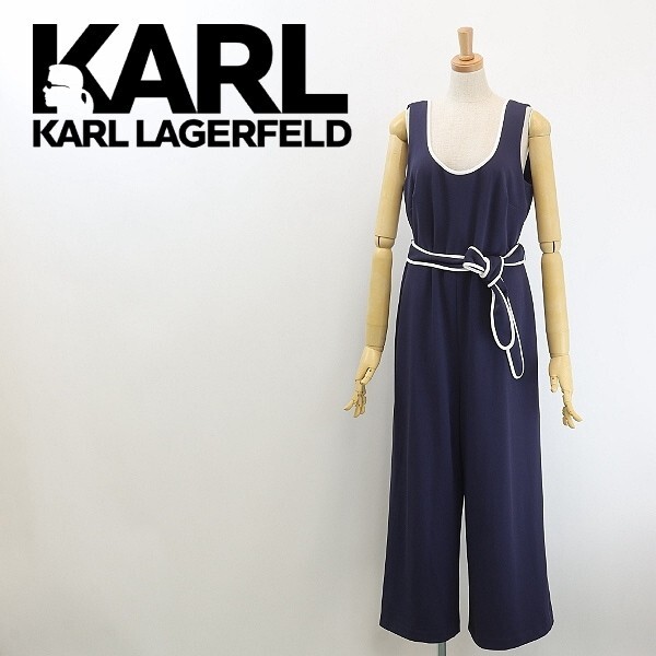 | ◆KARL LAGERFELD カール ラガーフェルド ストレッチ パイピング リボンベルト付 ノースリーブ オールインワン 紺 ネイビー×ホワイト 6 | |