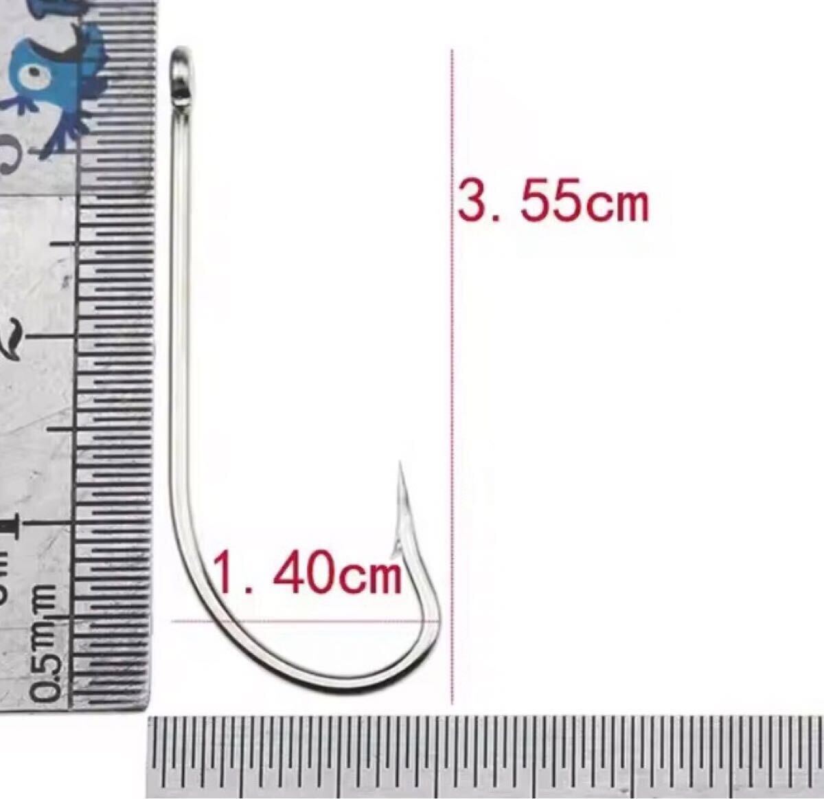 実は本商品はある人のために輸入をはじめました。彼、T氏は2023年に70代で他界しました。とにかく鰻の穴釣りの名人で、出品者は何回も同行したことがあるのですが、かならず出品者の倍以上の鰻を捕獲する人でした。視力が衰えてきて仕掛作りに苦労していたので、出品者が毎年(とは言っても晩年の2年くらいでしたが)仕掛に関して準備しました。T氏はとにかく「大きい針、大きい針」と出品者にリクエストしました。最終的にT氏のお気に入りになったのが本商品です。5LからLまでを出品者の手のひらに乗せて見せると、T氏その時の気分で「今日はコレ」とニヤリとしなが仕掛を選んで川に入って行きました。山間部や上流ではなく、実は目と鼻の先に海がある場所でもこれらの針を使っていました。小さい鰻はリリースしていたので、それをさける目的があったのだとも思われます。余談でした。