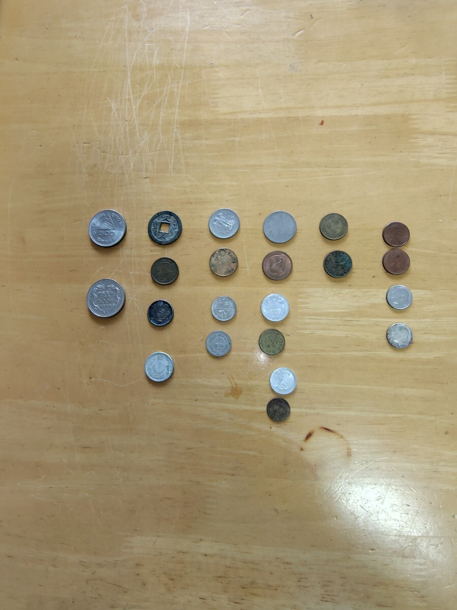 記念硬貨は購入。古銭は実家にあったもの。貨幣セットは頂き物。外国硬貨は主に叔父からの頂き物です。