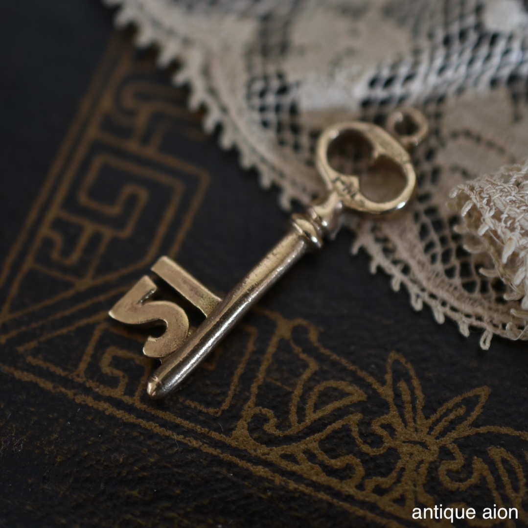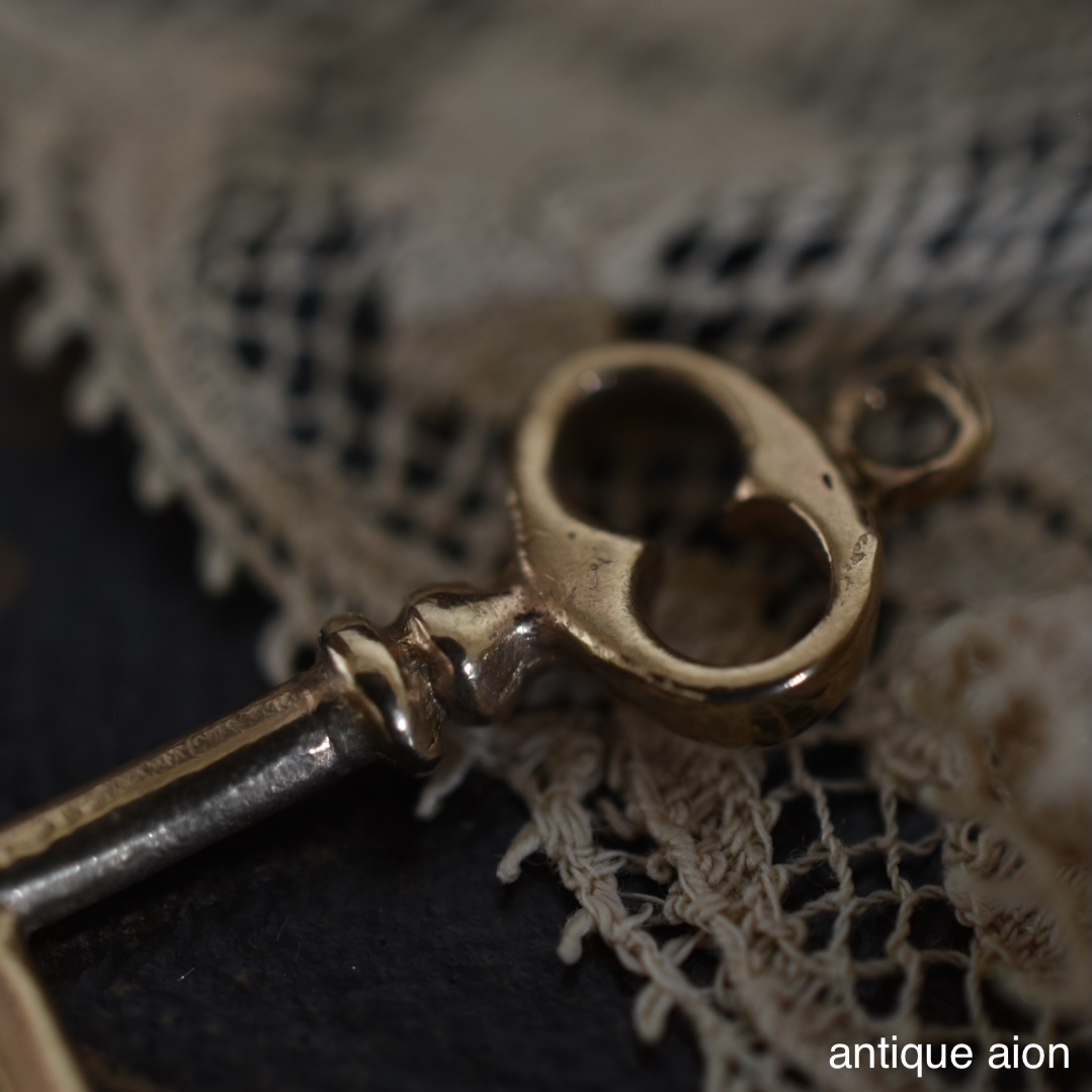 9金ゴールドで丁寧に仕立てられた小さな鍵のチャームには、