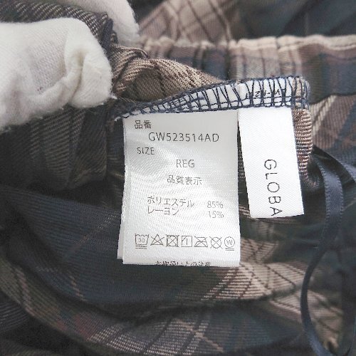 ◇ ⊂ GLOBAL WORK グローバルワークワーク チェック柄 ロング プリーツ スカート サイズM ネイビー ブラウン レディース E