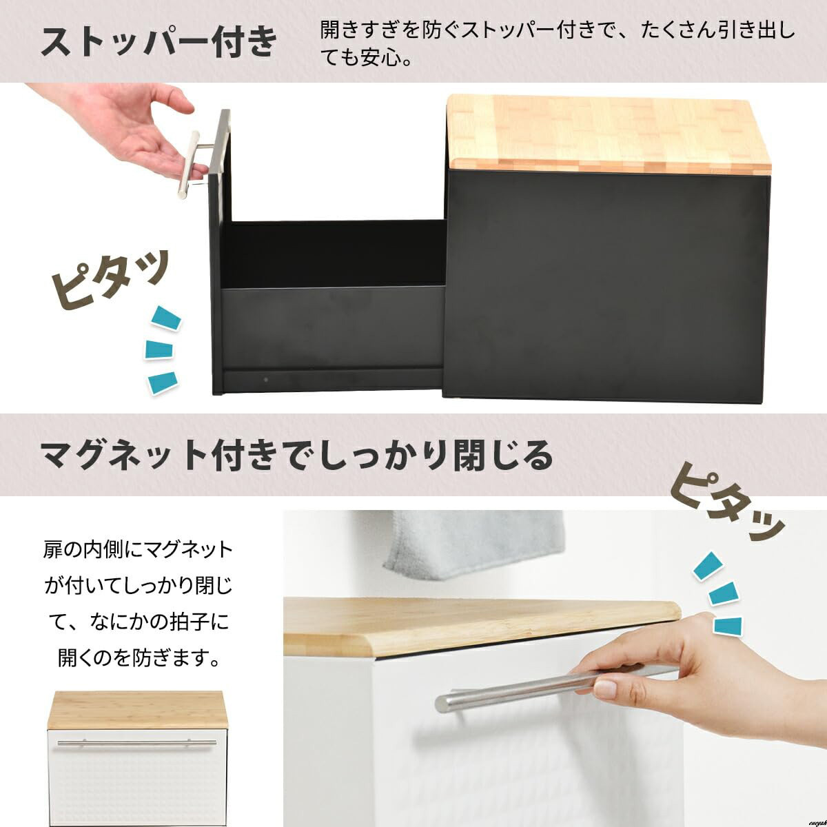 【隠して魅せる引き出し式ブレッドケース】 キッチンラック 幅400mm パン収納 調味料収納 北欧 おしゃれ ホワイト