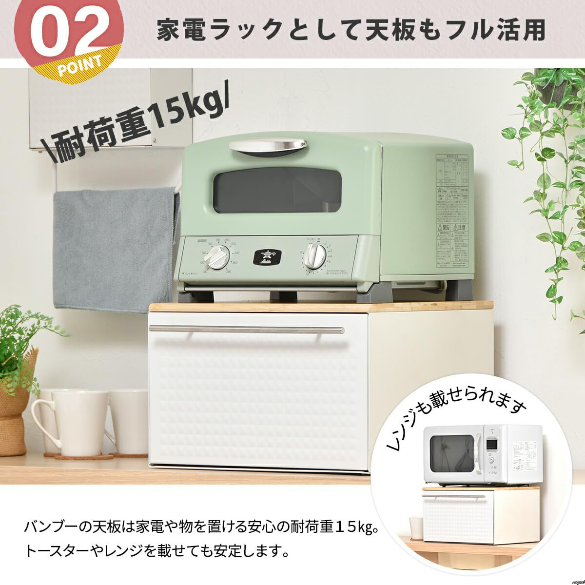 天板は耐荷重15kgで、トースターや電子レンジの設置も可能です。