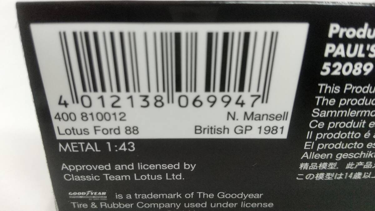 ミニチャンプス 1/43 ロータス 88 イギリスGP N.マンセル(400810012)