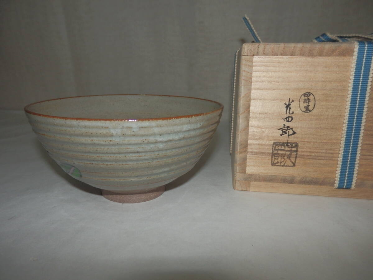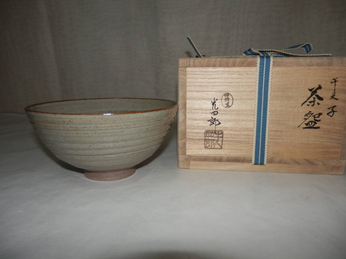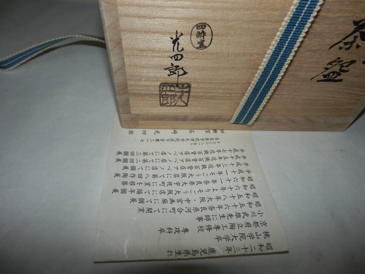 「未使用・茶道具」 奈良県の四酔窯の石崎光四郎さんの干支の茶碗です。子{ねずみ}です。 最大径約12.8cm 高さ約6.4cm 高台の横に四酔窯の印有。 桐共箱「ヤケ、シミ等有」。展示未使用品です。 どうぞ宜しく。