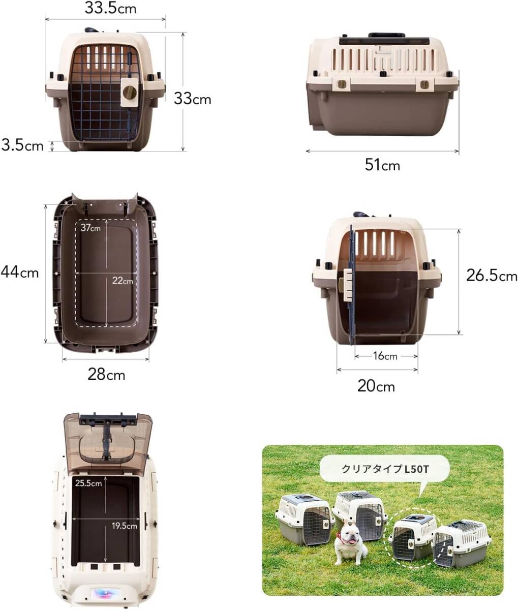 • トップオープンクリアL50Tサイズ(約):【外寸】幅33.5×奥51×高33cm【内寸】幅28×奥44×高30cm【底面】幅22×奥37cm【入り口】(正面)幅16×高26.5cm /(天井)幅19.5×奥25.5cm ●重量(約):2.3kg ●耐荷重(約):〜5kg ●材質:【ケージ】ポリプロピレン【ドア】スチール【窓】ABS樹脂 ●生産国:中国(企画・デザイン/中国) ●メーカー:株式会社オーエフティー