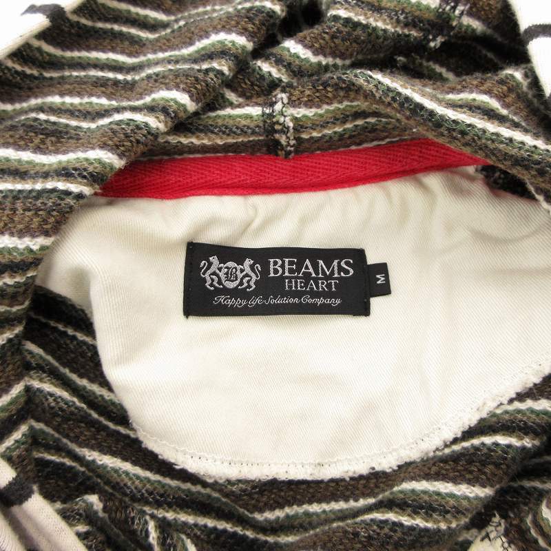 ビームスハート BEAMS HEART パーカ フーディ プルオーバー ボーダー 長袖 M アイボリー 黒 ブラック /AE メンズ