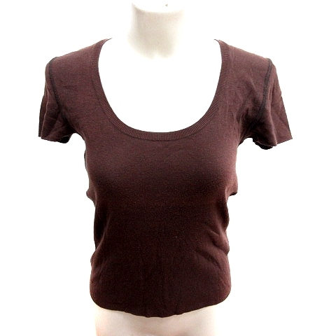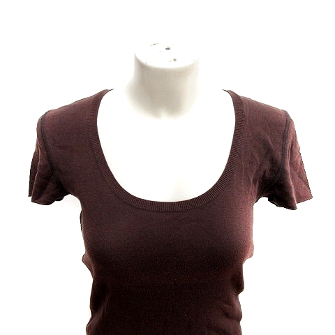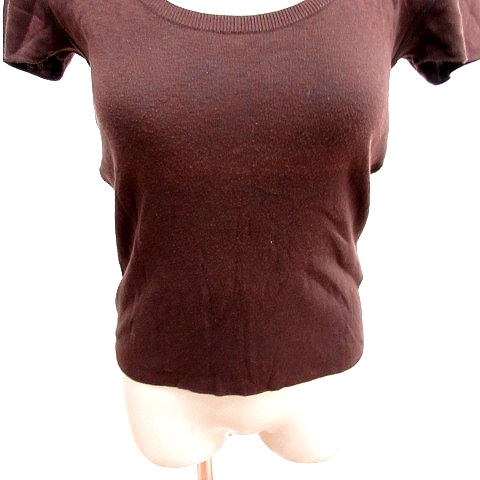 オールドイングランド OLD ENGLAND ニット カットソー Uネック 半袖 36 茶 ブラウン /RT レディース