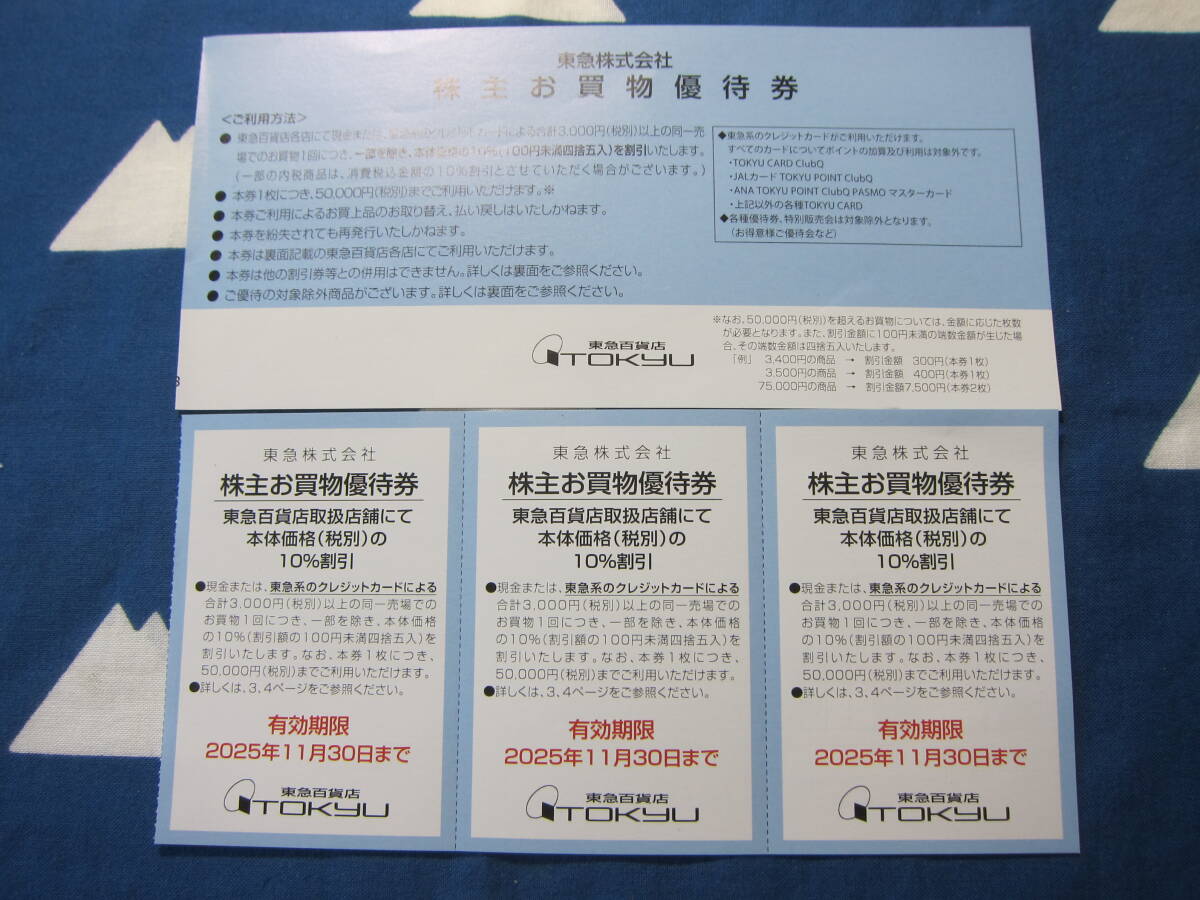 株主優待 東急 東急百貨店 渋谷ヒカリエShinQs 株主お買物優待券 10%割引 3枚 有効期限2025/11/30日まで その1