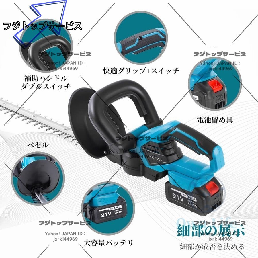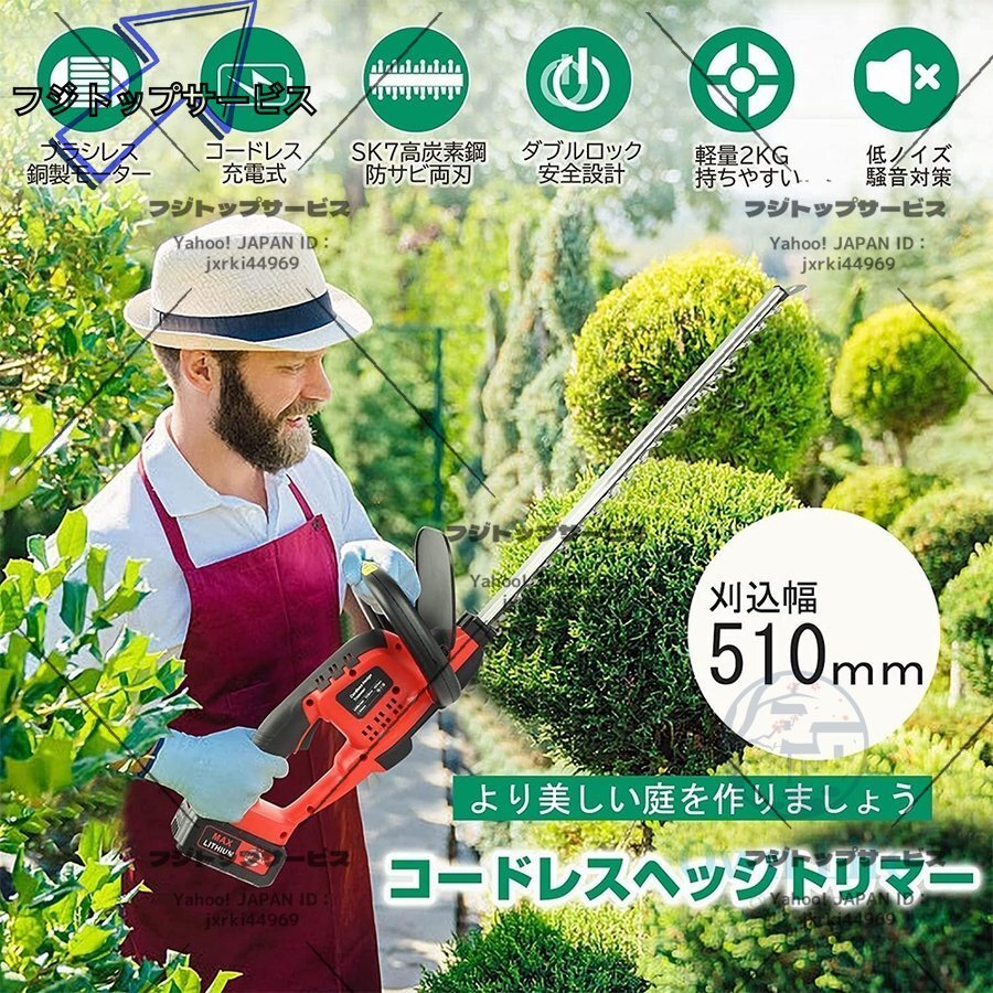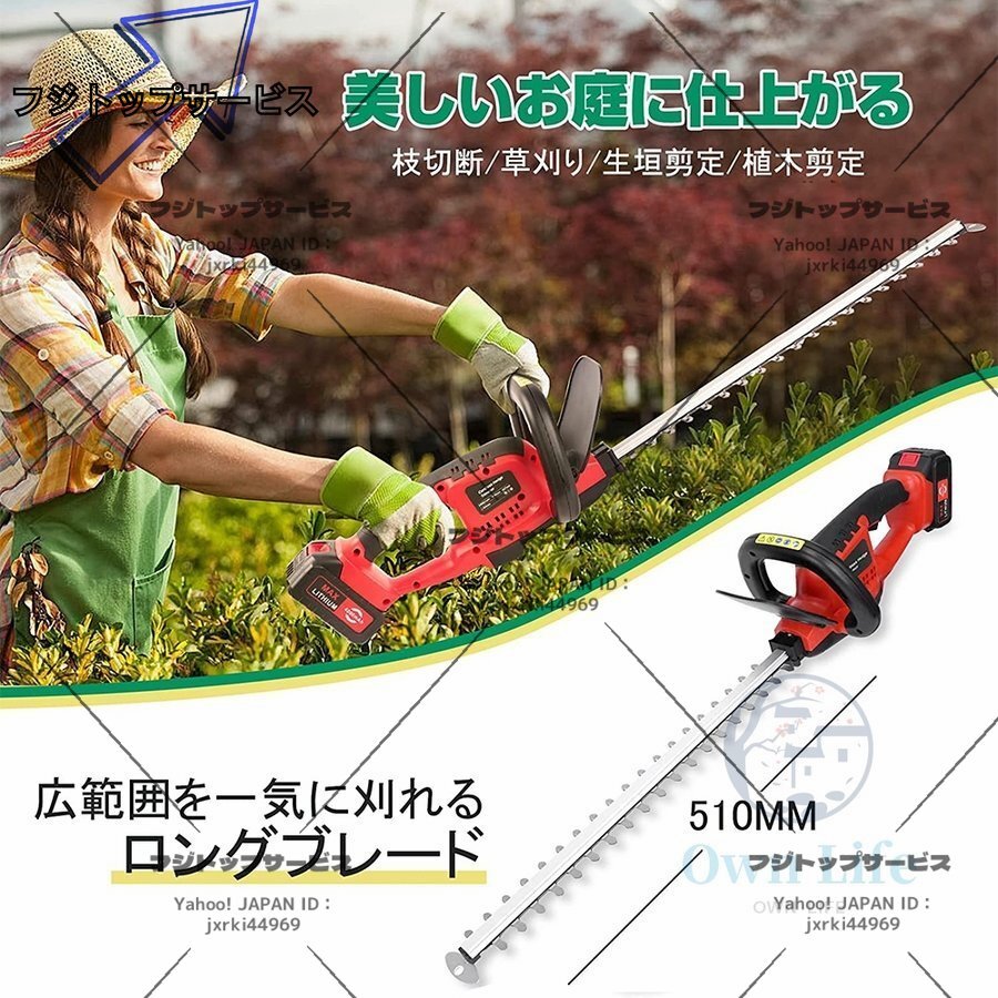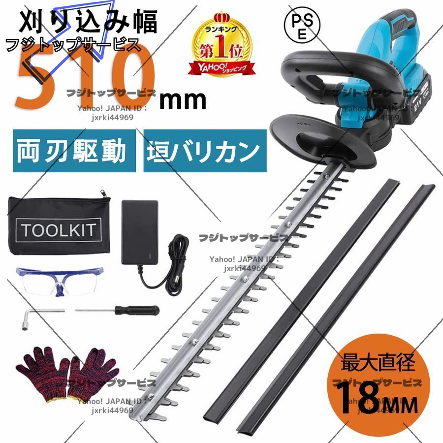 ヘッジトリマー 充電式 マキタ 18Vバッテリー互換 充電器1個 バッテリー1個 草刈機 芝刈り機 コードレス 直径14Cm 切断幅510mm 園芸 剪定