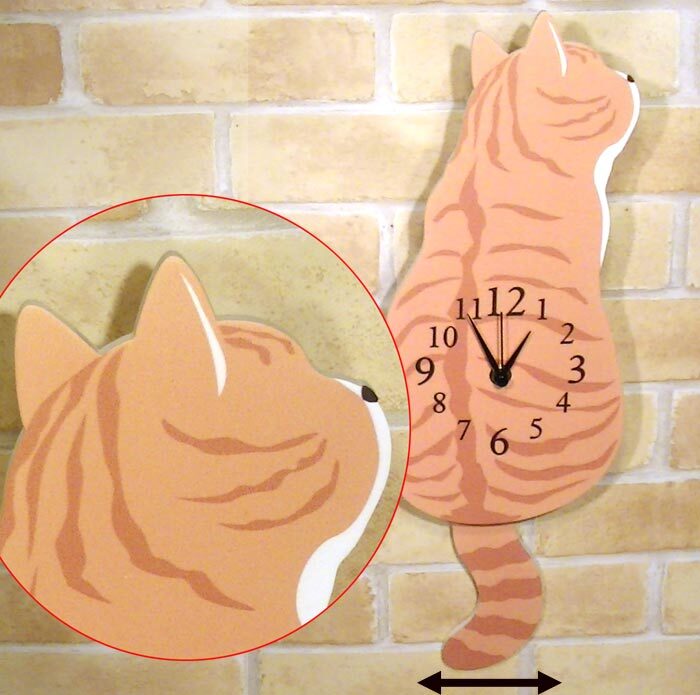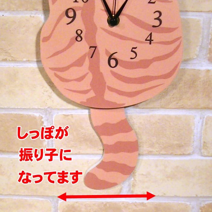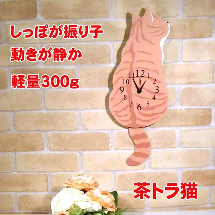 1011-05 掛け時計 振り子時計 木製 かわいい 茶トラ猫 秒針音なし おしゃれ かけ時計【雑貨店が販売・もちろん・新品】