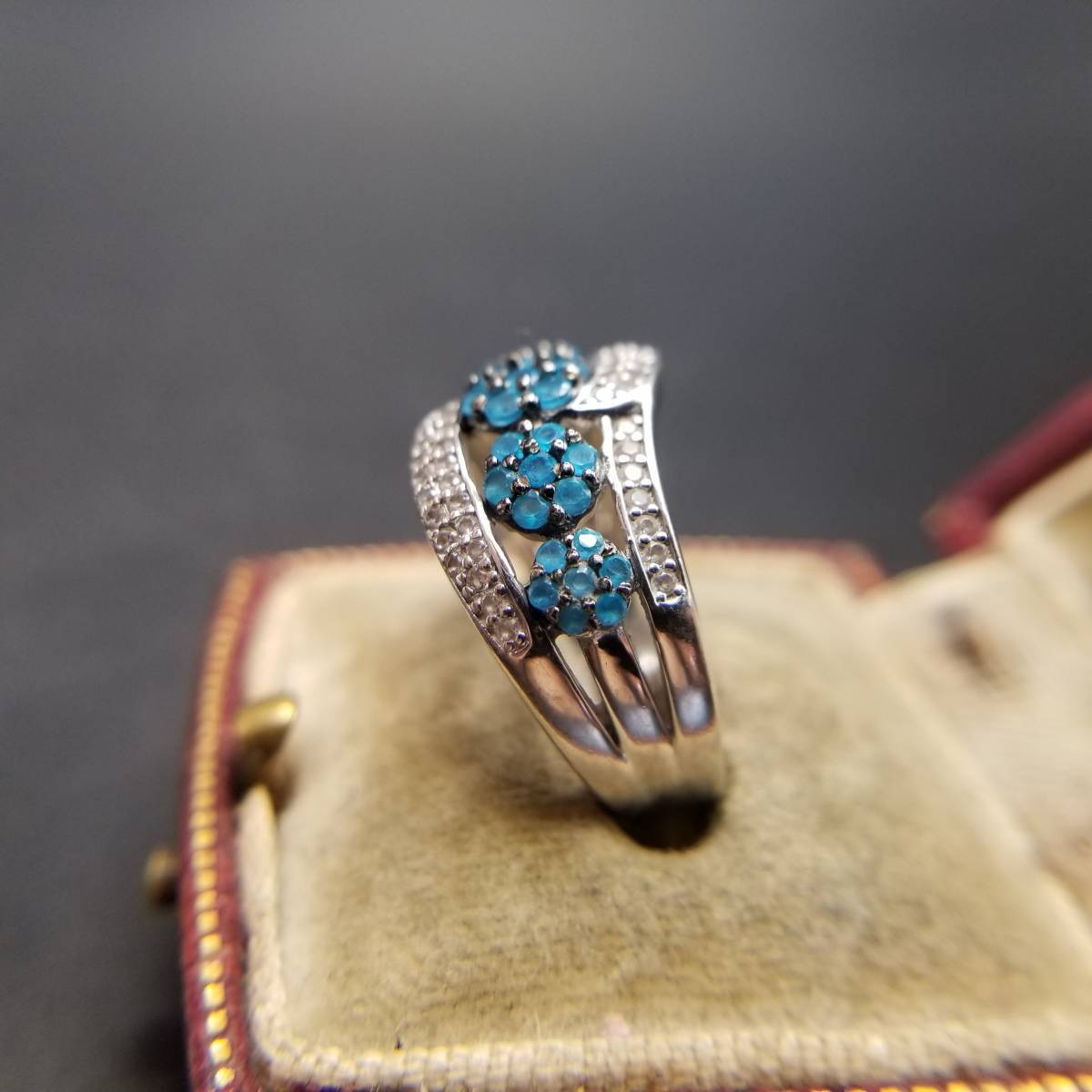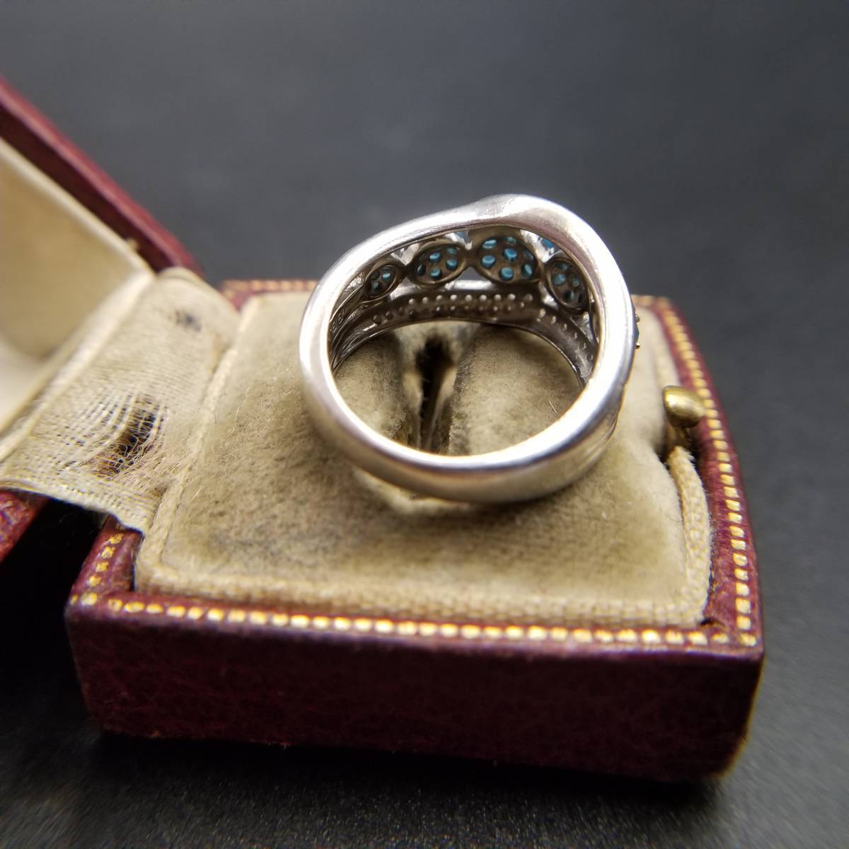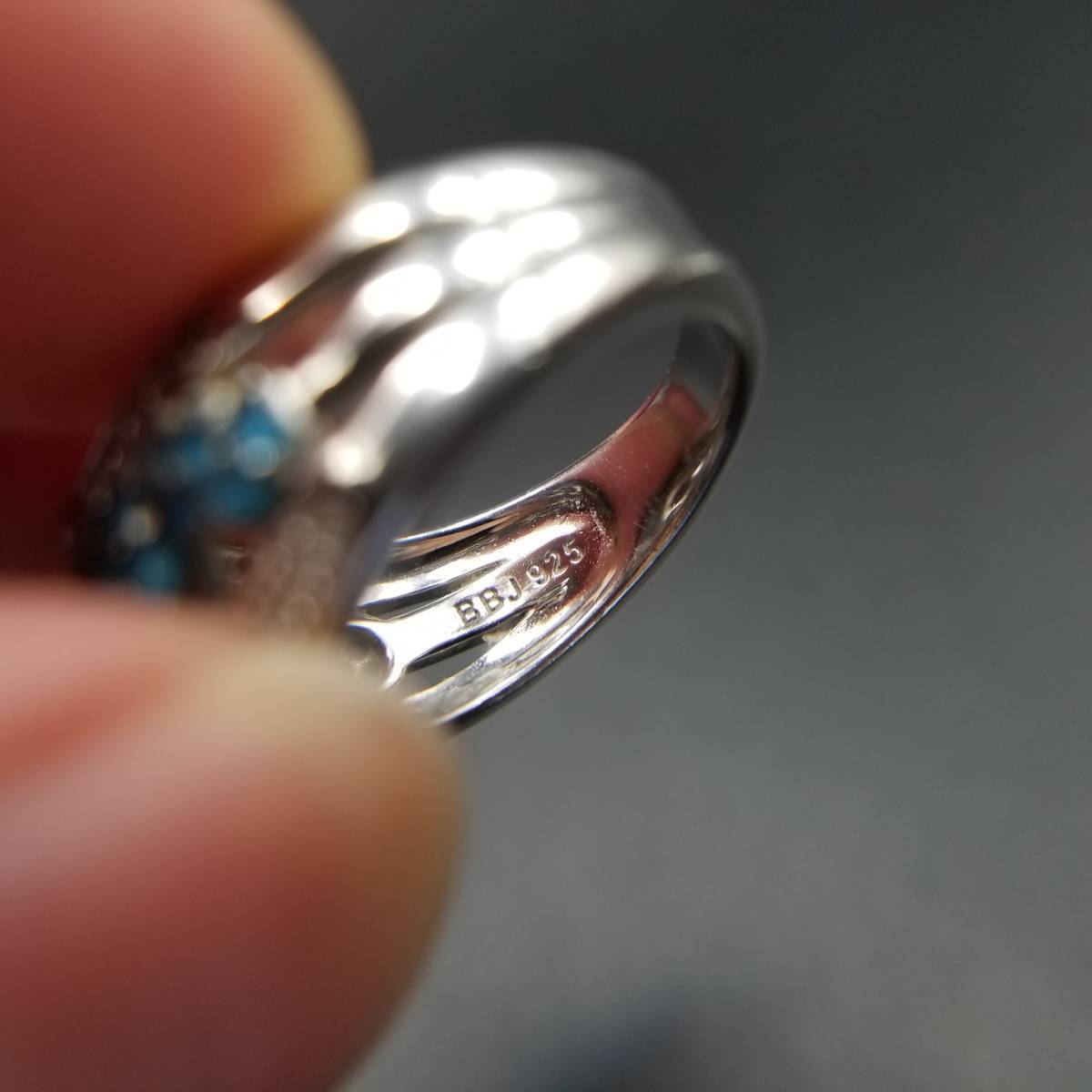 デザイナー BBJ ブルー/クリア キュービックジルコニア フラワー 925 シルバー ビンテージ リング 銀 指輪 カクテルリング 花 5g 8Y-L