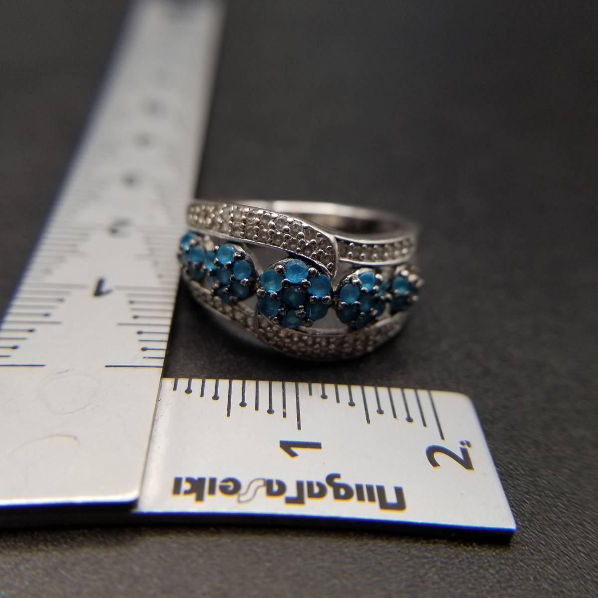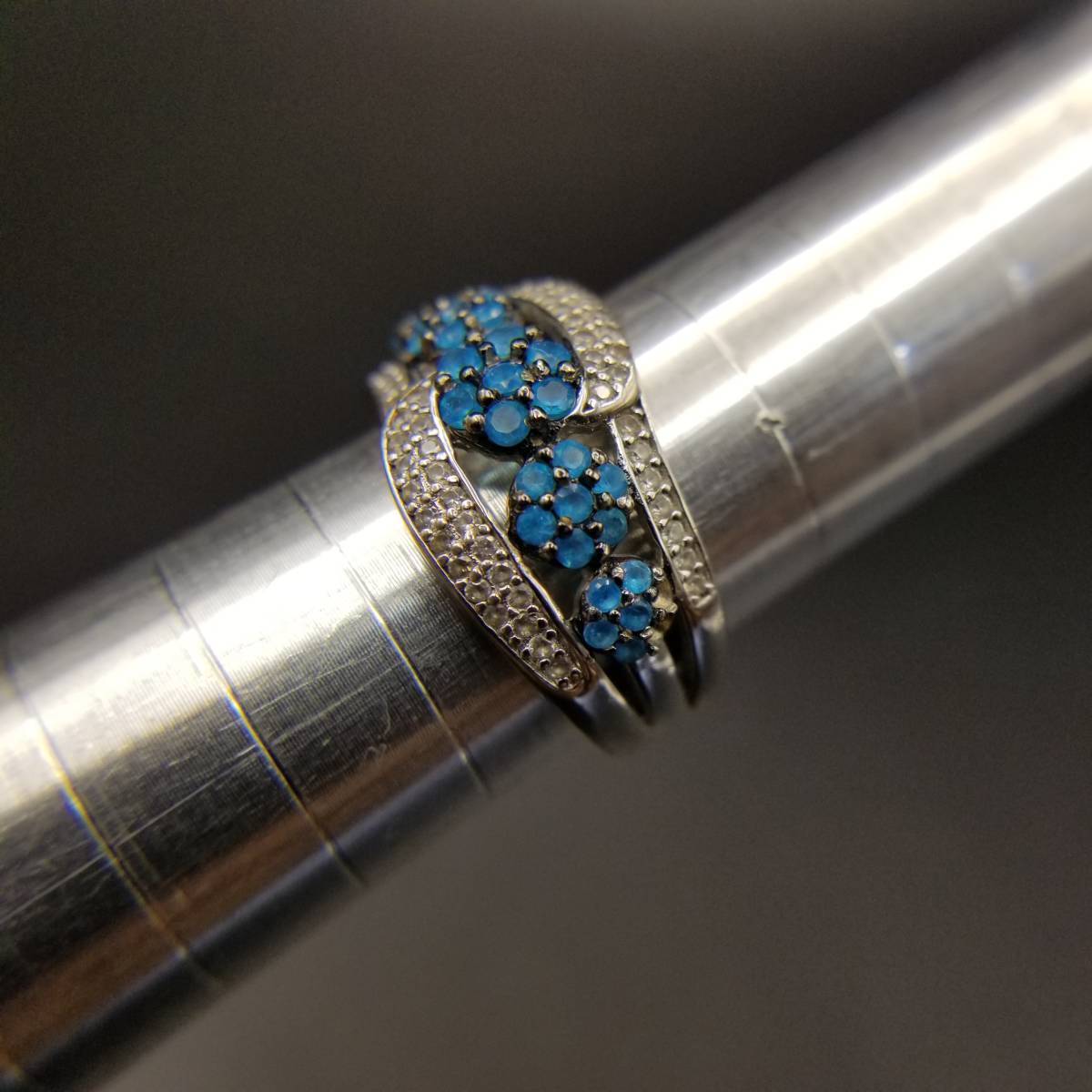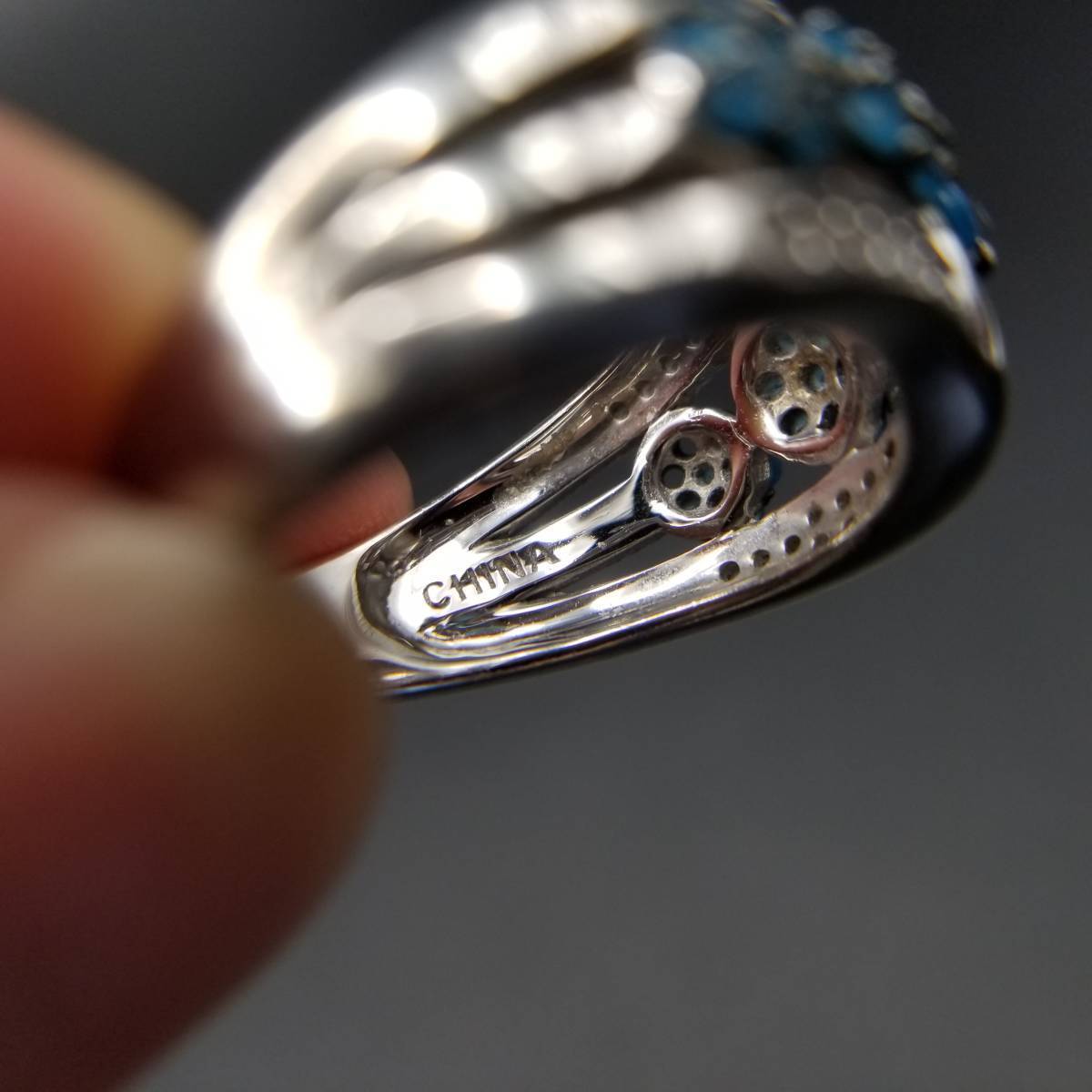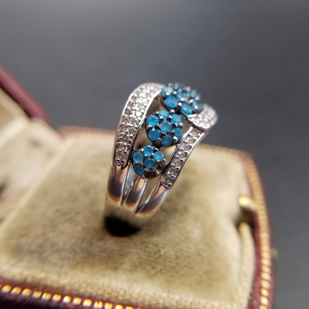 デザイナー BBJ ブルー/クリア キュービックジルコニア フラワー 925 シルバー ビンテージ リング 銀 指輪 カクテルリング 花 5g 8Y-L