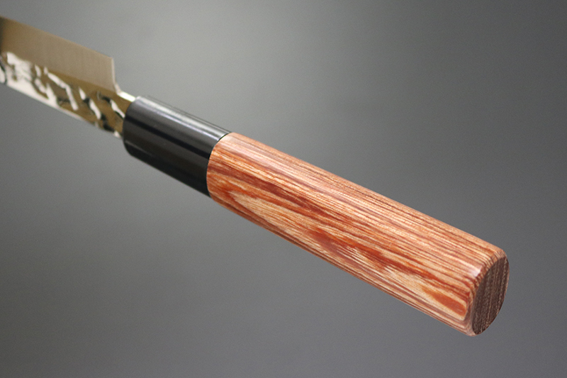 耐水性にも優れた赤合板丸柄は、握った感じも手に心地よい包丁です。