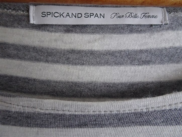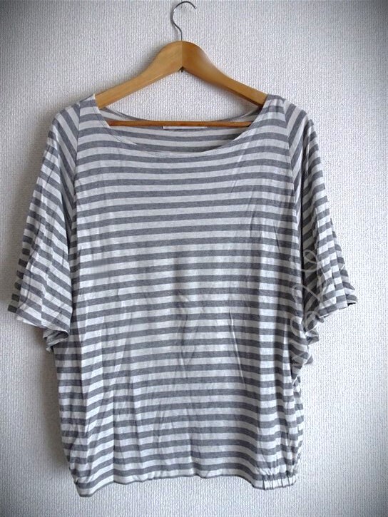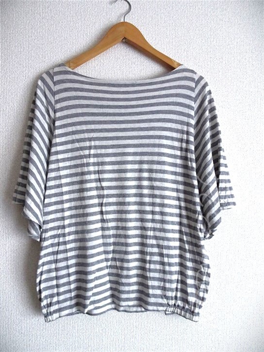 【Spick & Span ☆ スピック&スパン】 Tシャツ 半袖 デザインカットソー ボーダー グレイ ホワイト 古着 キラキラ ドルマン シンプル