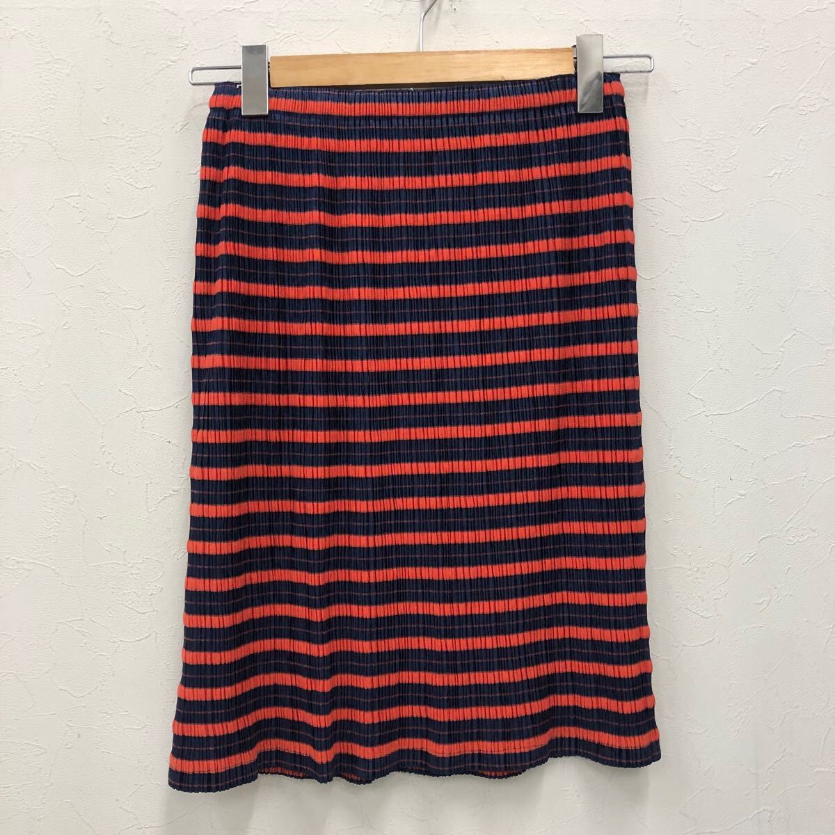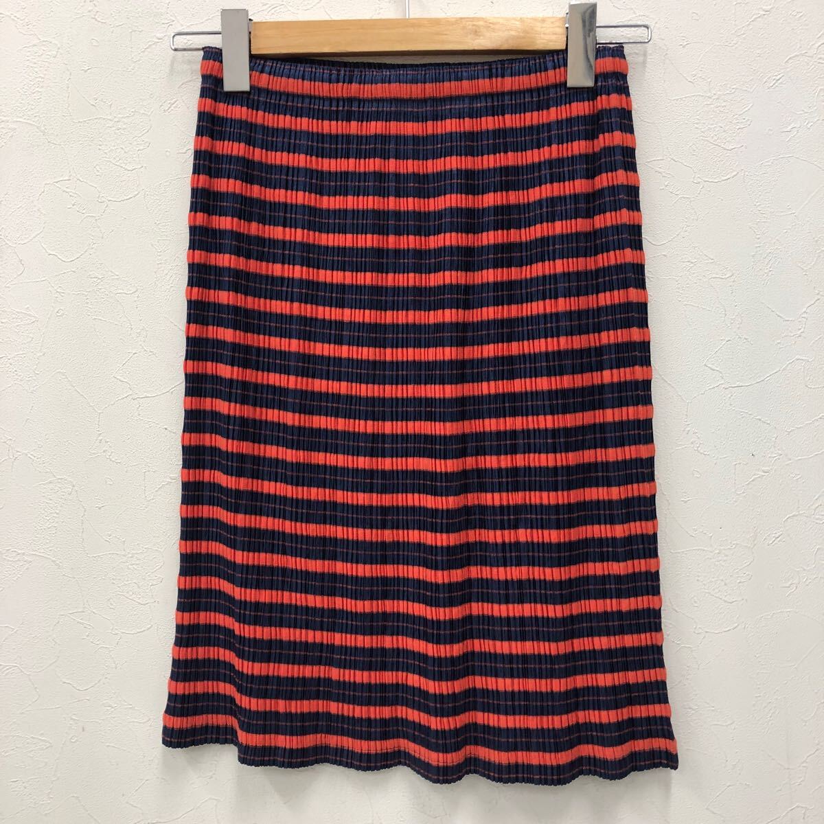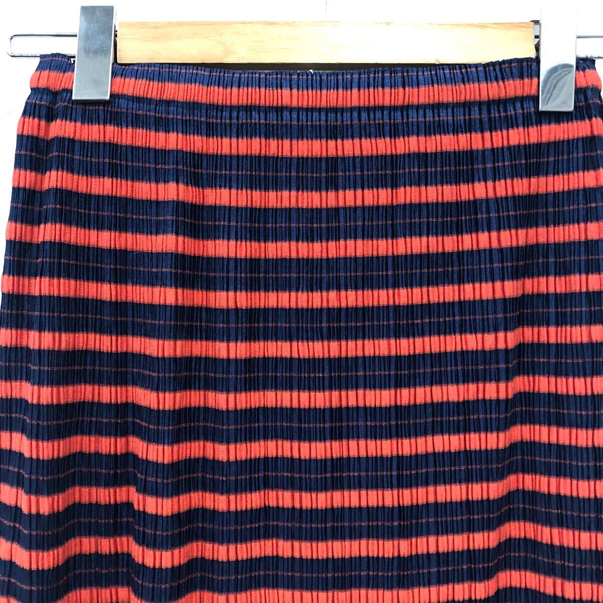 (30)PLEATS PLEASE ISSEY MIYAKE プリーツプリーズ イッセイミヤケ プリーツ スカート 3 ネイビー オレンジ ポリエステル PP83-JG524 ボーダー