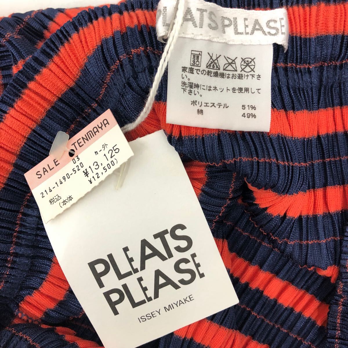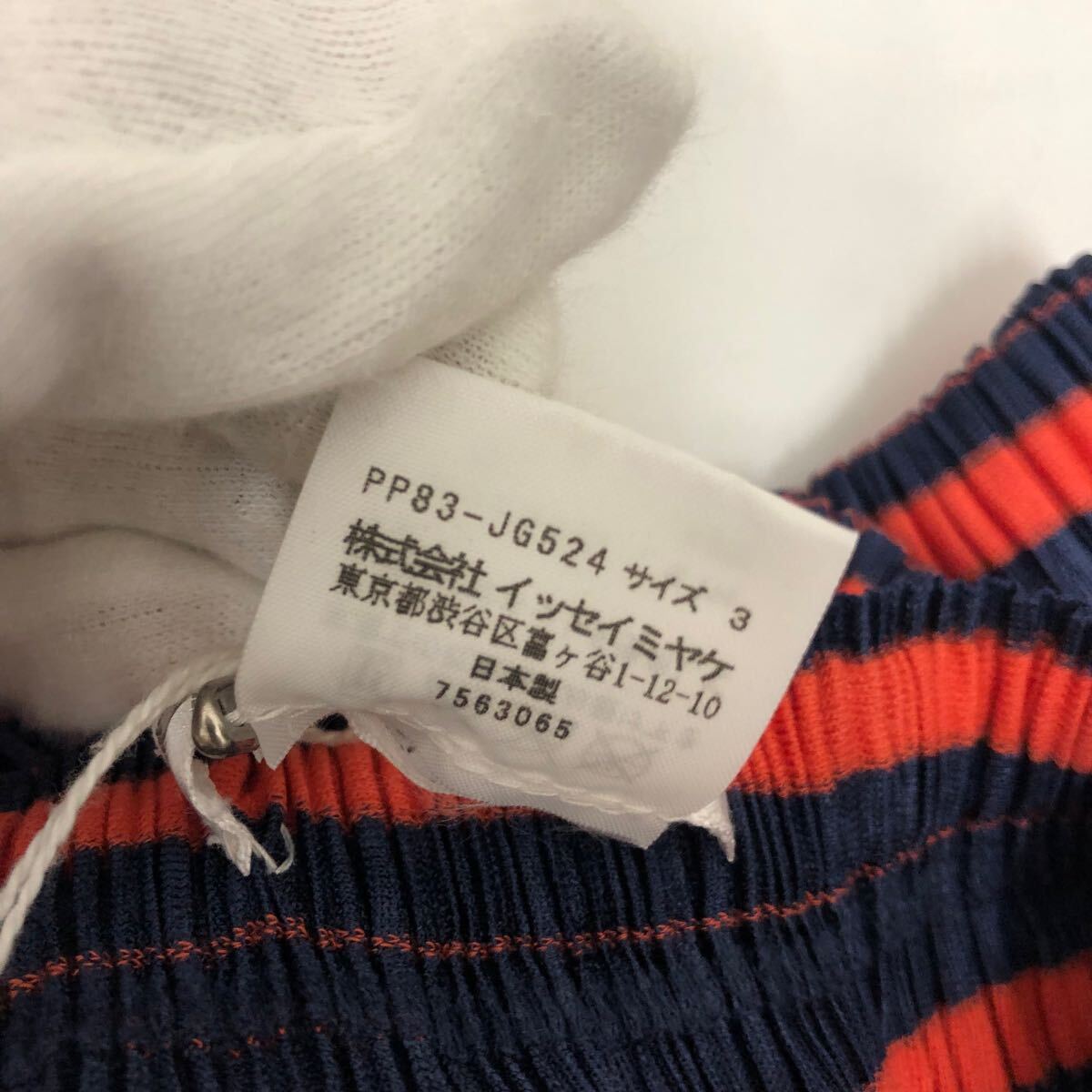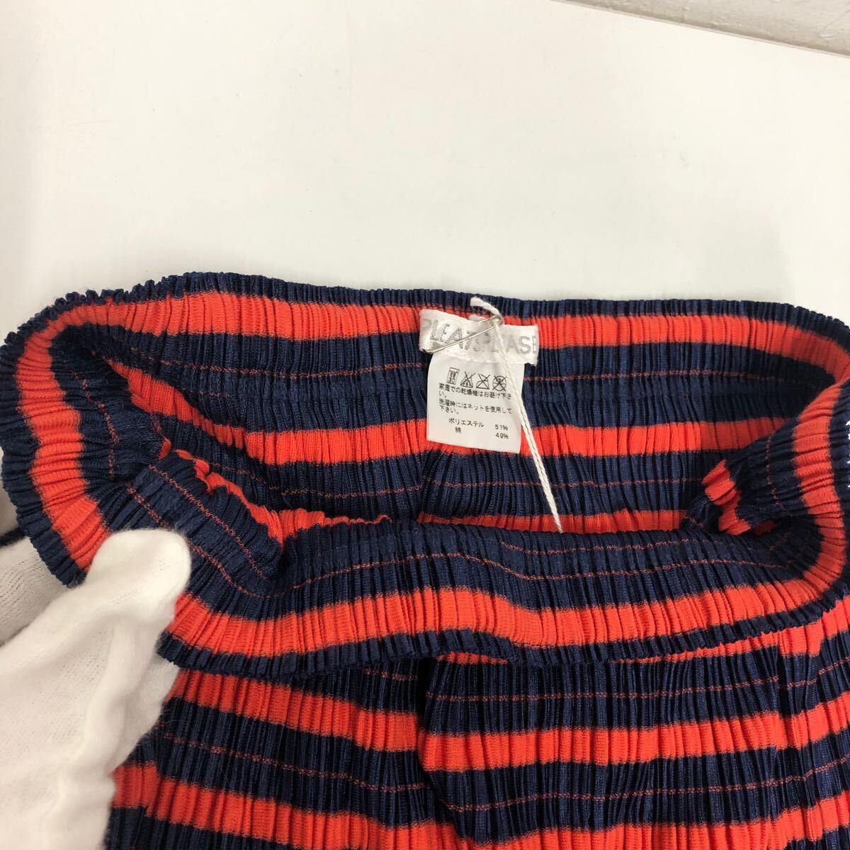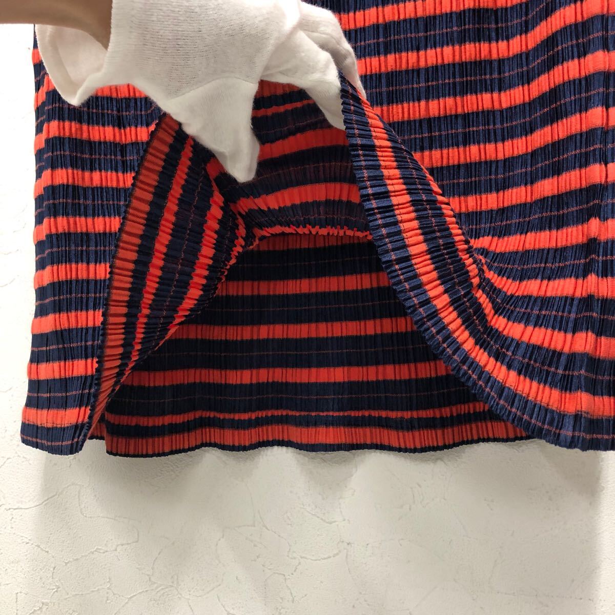 (30)PLEATS PLEASE ISSEY MIYAKE プリーツプリーズ イッセイミヤケ プリーツ スカート 3 ネイビー オレンジ ポリエステル PP83-JG524 ボーダー