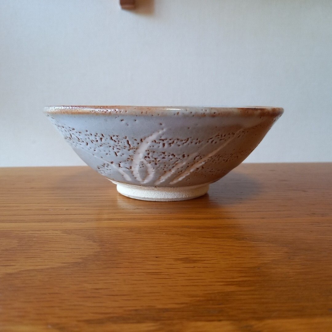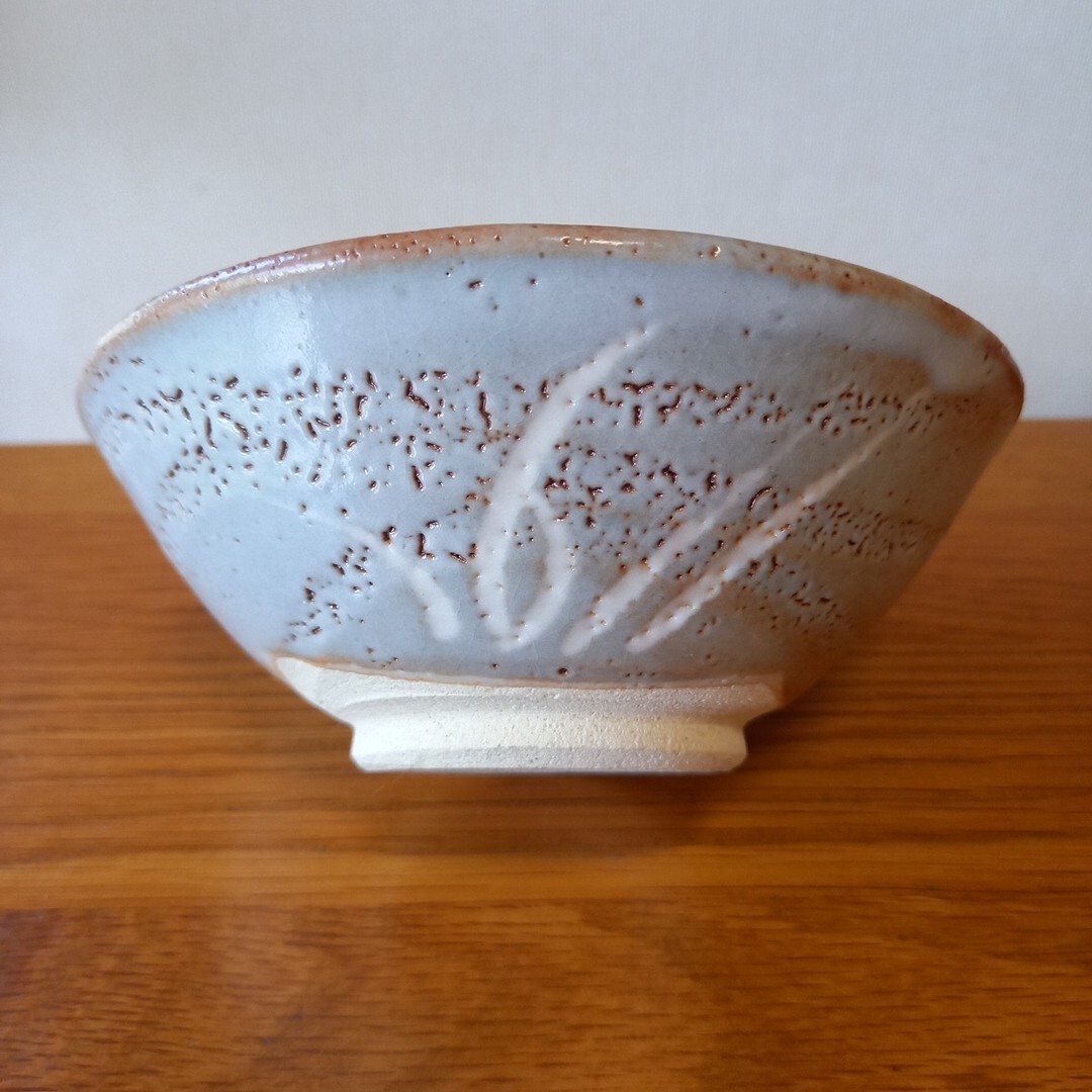 削りや、書き落としの絵など一つ一つ手作業で作ってある平茶碗です。