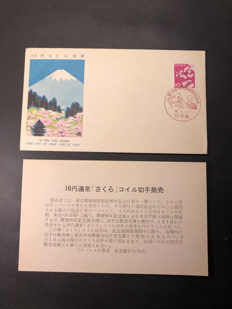 ★FDC 初日カバー★普通切手 第2次円単位コイル 10円「さくら(染井吉野)」 普及協会版 昭和36年発行 Y7931