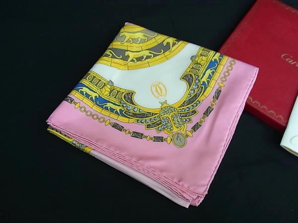 ■新品■未使用■ Cartier カルティエ シルク100% 総柄 大判 スカーフ ストール ショール レディース ピンク系 BI7911