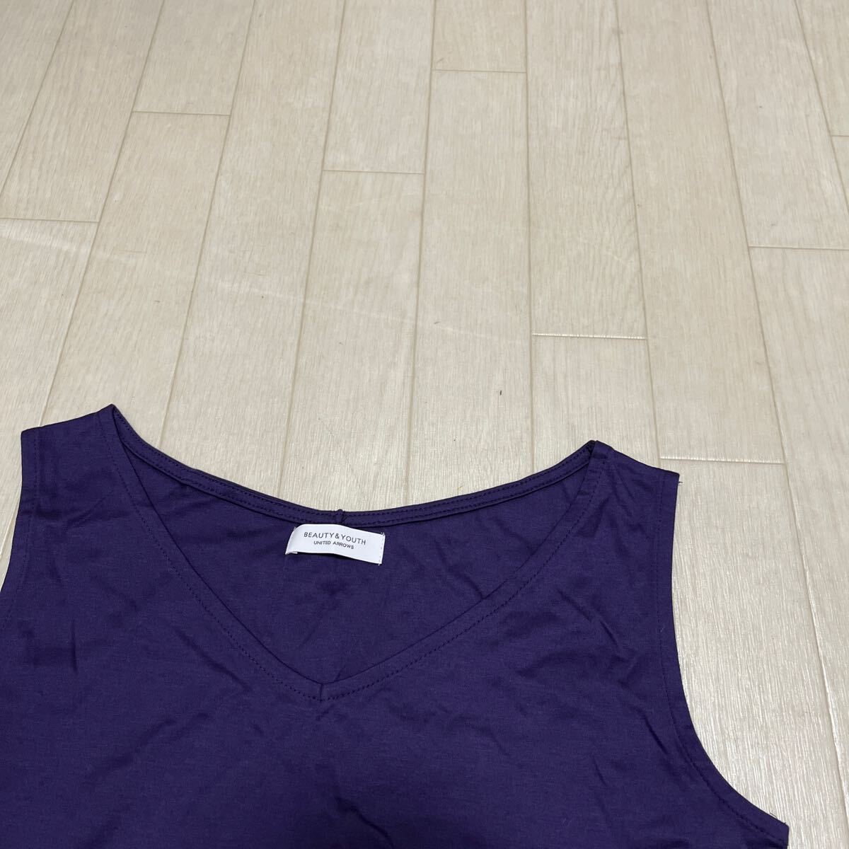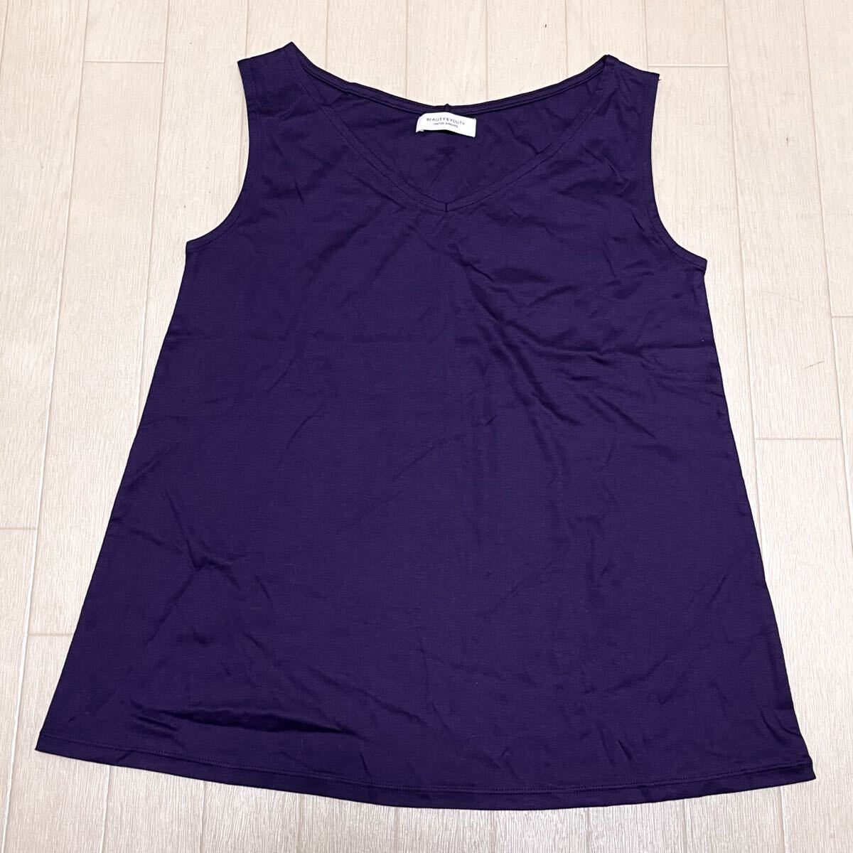 和762★ BEAUTY&YOUTH UNITED ARROWS ビューティ&ユース タンクトップ カットソー ノースリーブ 日本製 ネイビー レディース