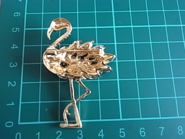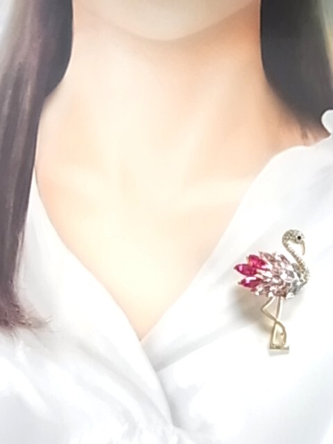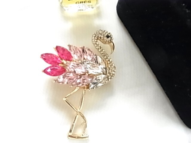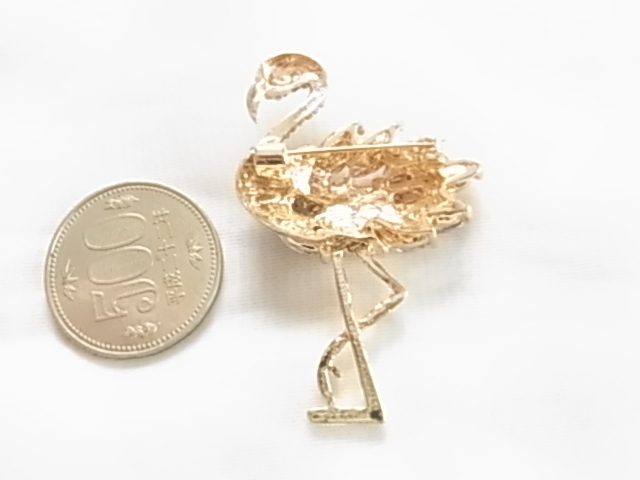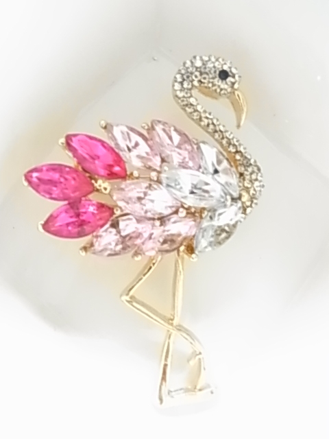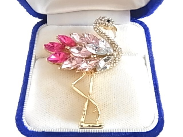 □未使用 可愛いピンクトーンのグラデーションとクリアラインストーンマーキスカットの羽が美しいフラミンゴデザイン 鳥 素敵なブローチ