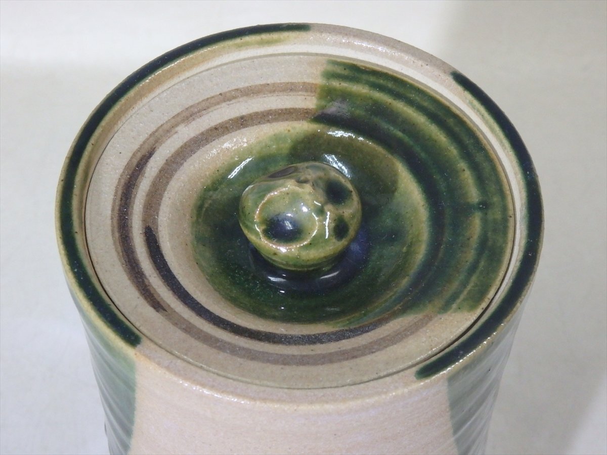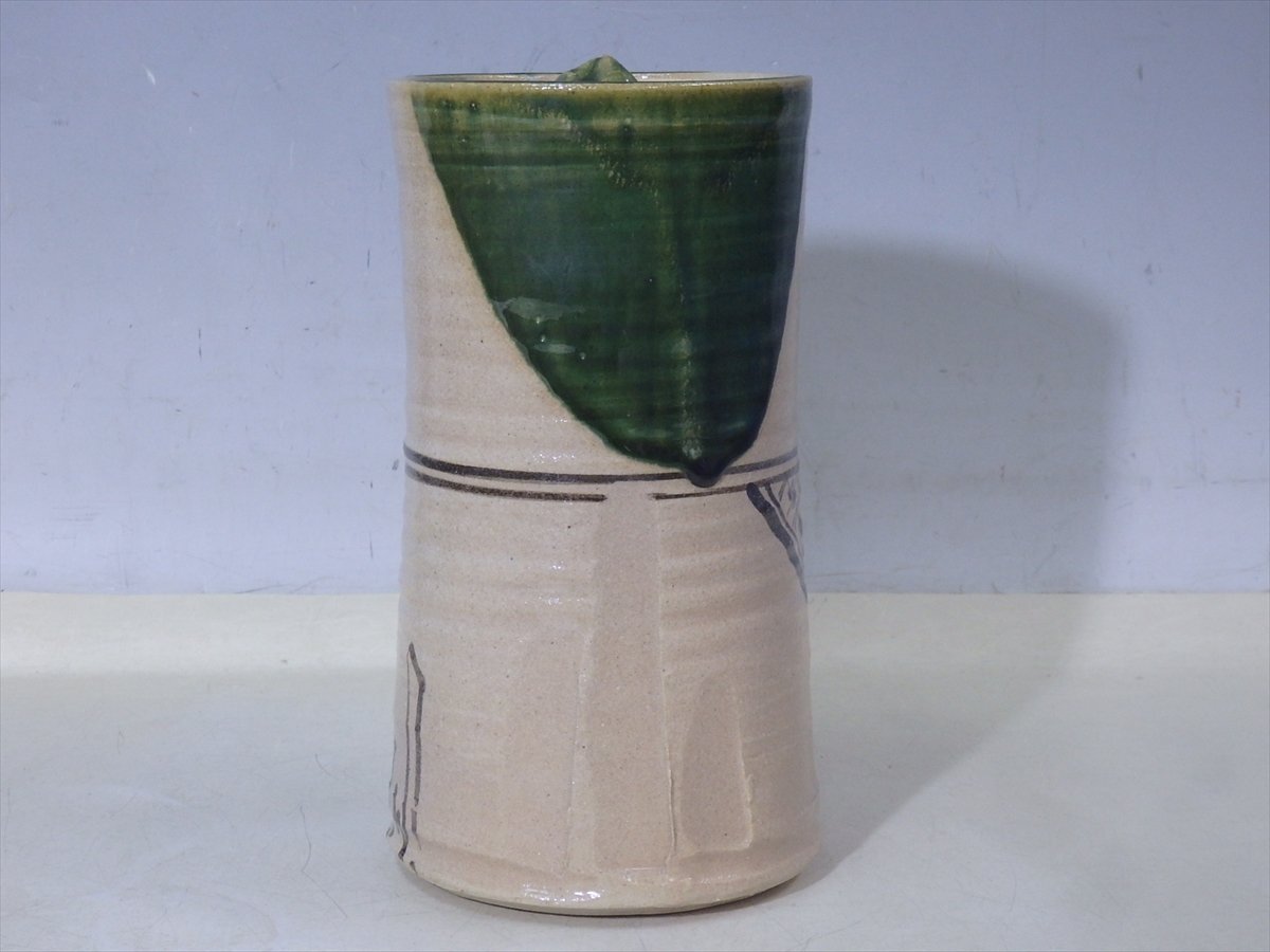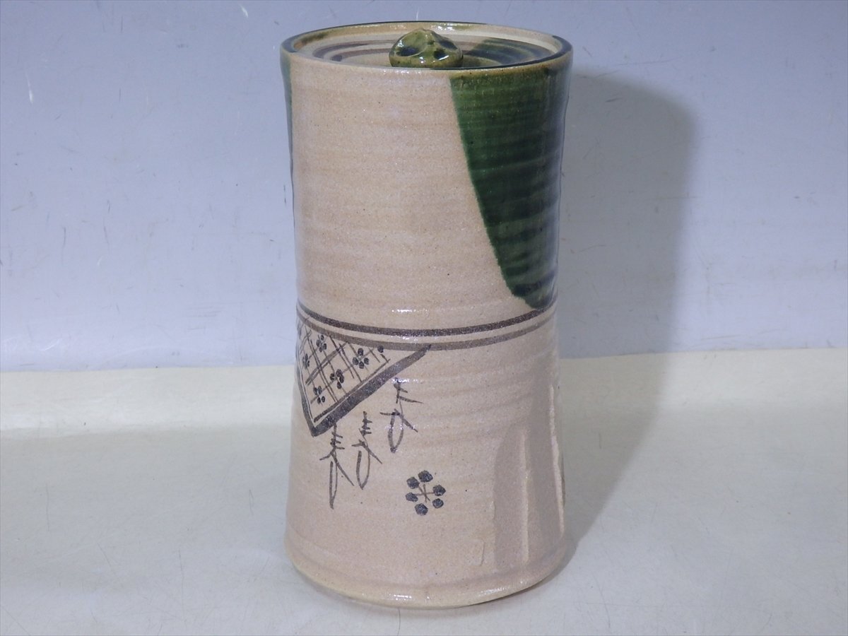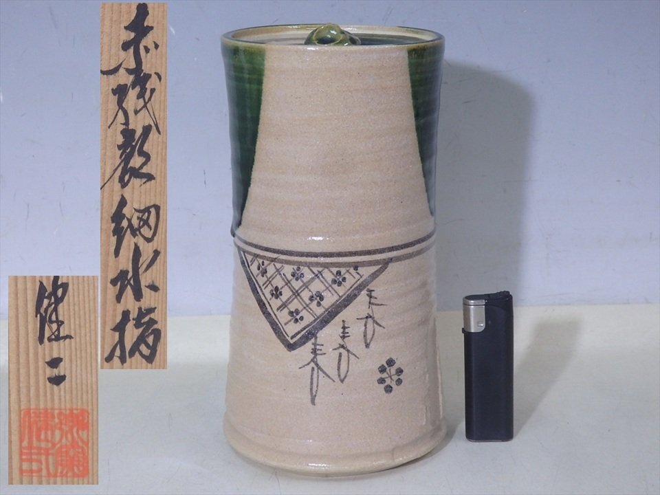 ★美品!郷之窯 水野健二作【赤織部細水指 共箱】赤土 直径12.5cm 高さ22.5cm 茶道具 茶器 セール!