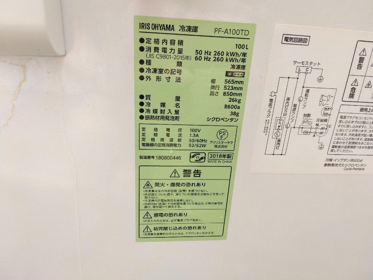 小型冷凍庫:上開方式:アイリスオオヤマ