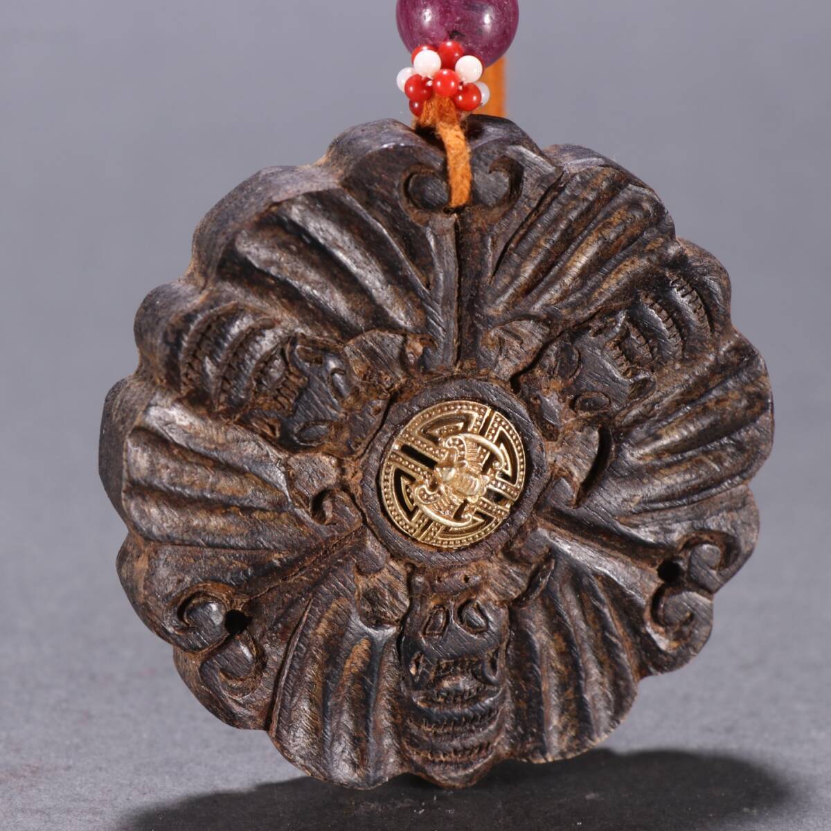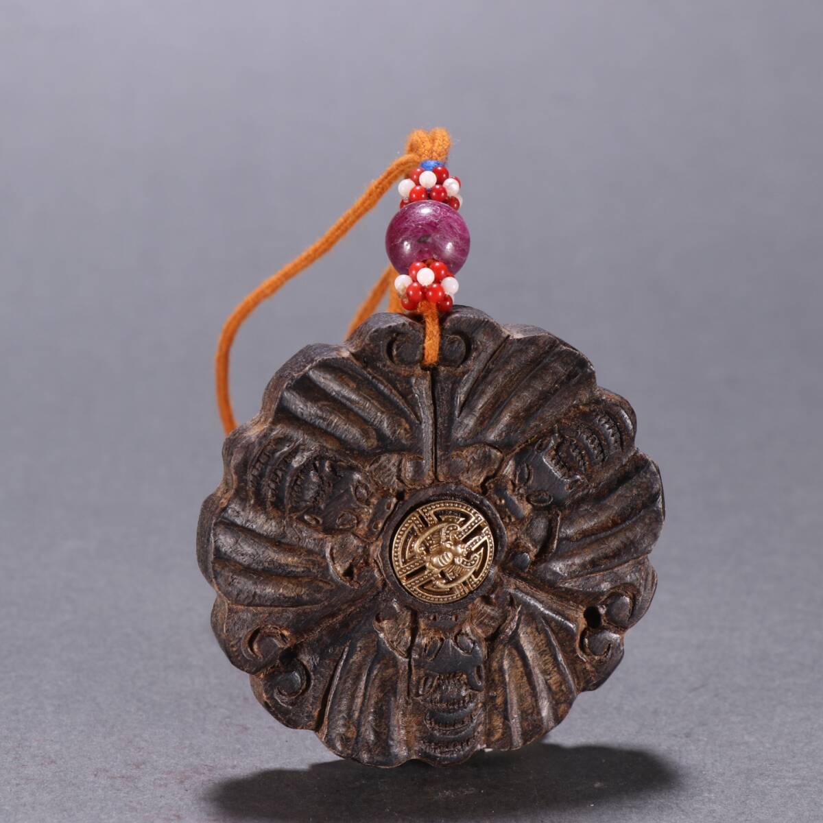 6_ZZ2921 【惠】人間国宝 古代木工芸品 【清沈香蝙蝠ささげ寿掛佩】彫刻品 中国古美術 中国骨董 時代物 本物 珍品旧蔵 伝世家珍