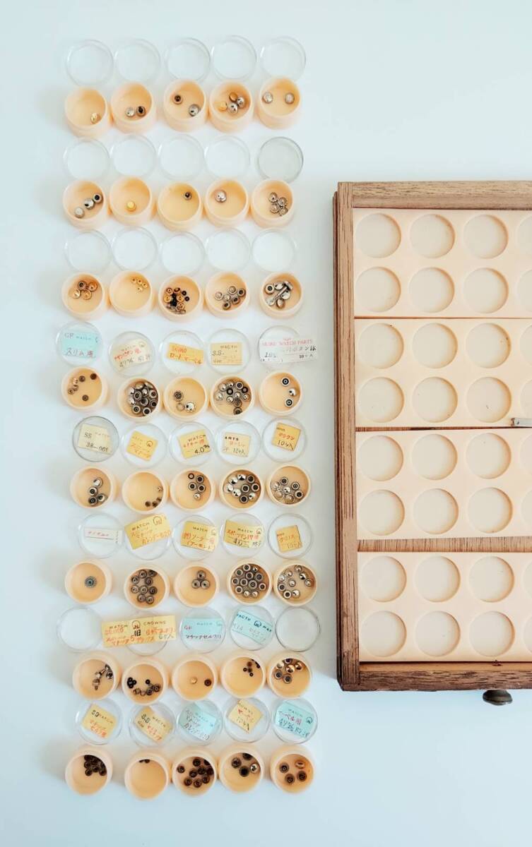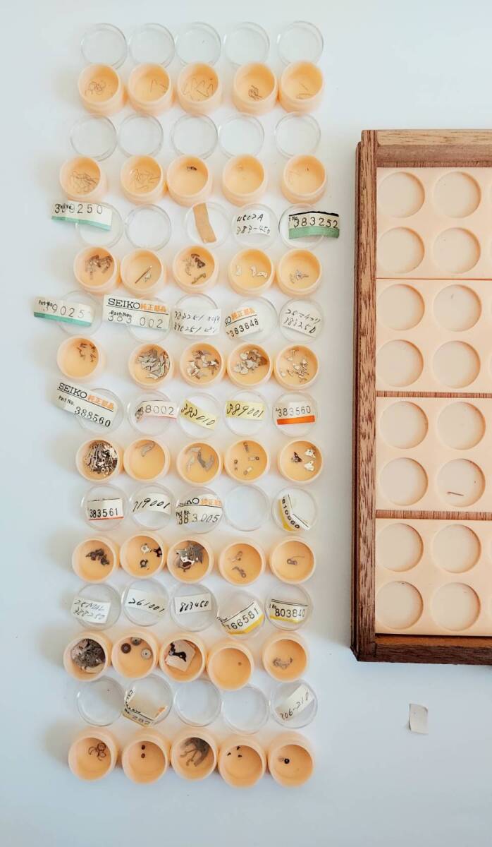 598 大量 SEIKO CITIZEN ORIENT 腕時計部品 まとめ売り 時計工具 時計修理 竜頭 針 尾錠 穴石 機械式腕時計中枠 など 古い引き出し になります。