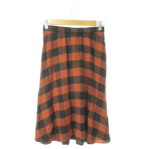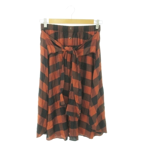 アンタイトル UNTITLED フレアスカート ミモレ ロング シャツデザイン リボン チェック 総柄 2 M 赤 レッド /AO20 レディース
