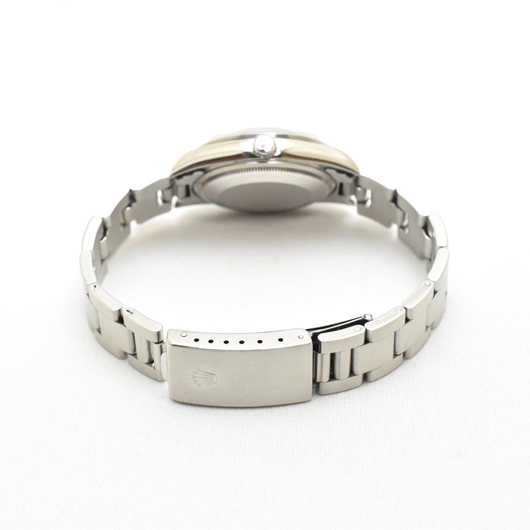 商品ランク | 中古Bランク 当店指定の時計修理業者にてオーバーホール・外装仕上げ済みです。取り切れない残りキズがありますが仕上げがされておりますのでとてもきれいな商品です。風防ガラスに少々のキズがございます。ブレスレットに経年使用・摩耗による伸び・ダレがございます。(画像参照) |