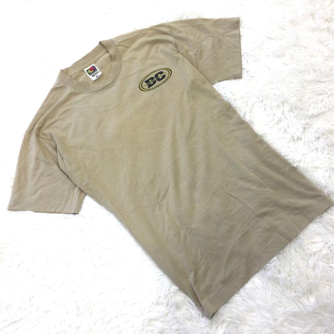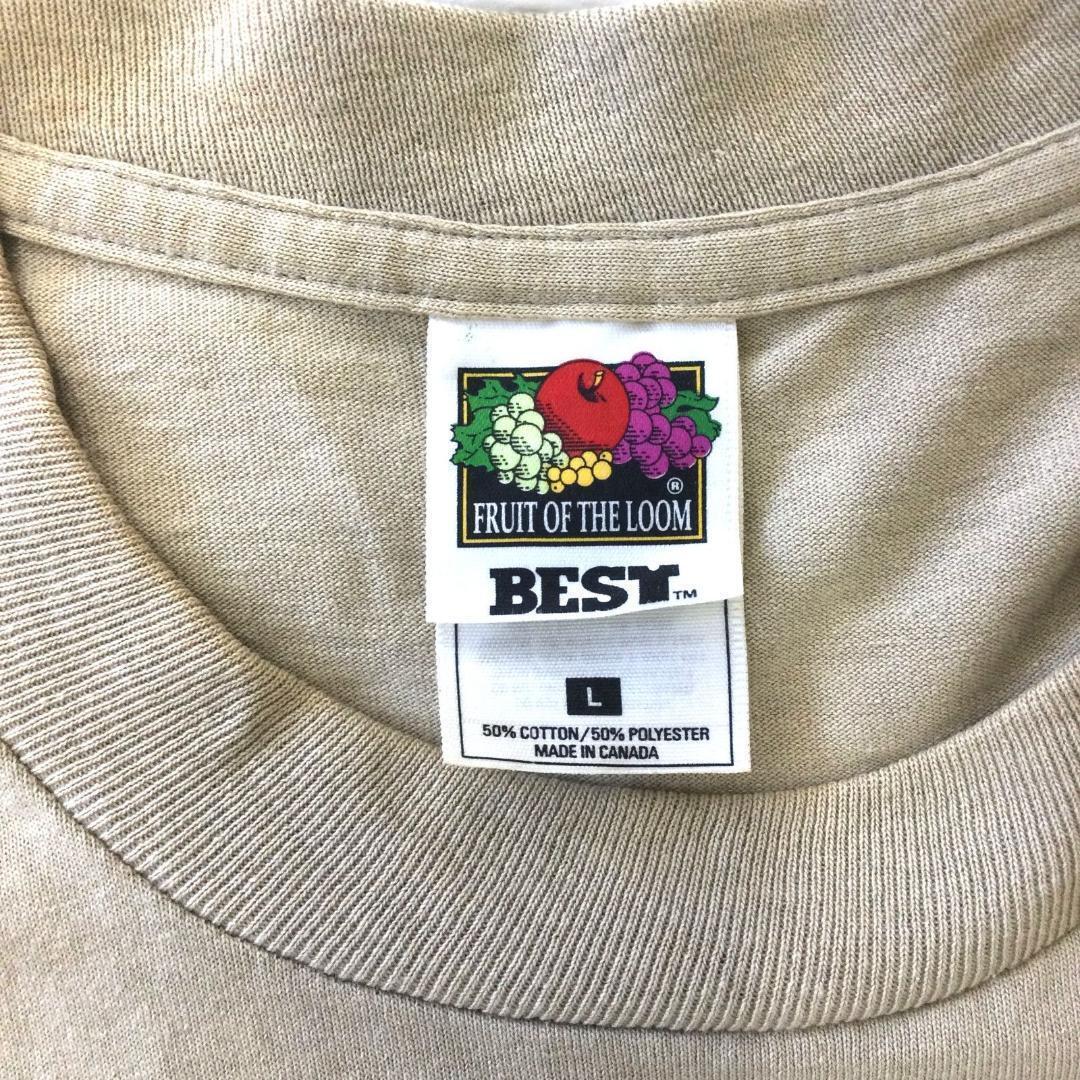 【AA1091】 フルーツオブザルーム FRUIT OF THE LOOM L プリントTシャツ カナダ製 バックロゴ カーキ系 半袖 ワンポイント 古着