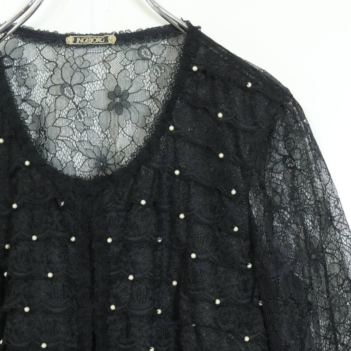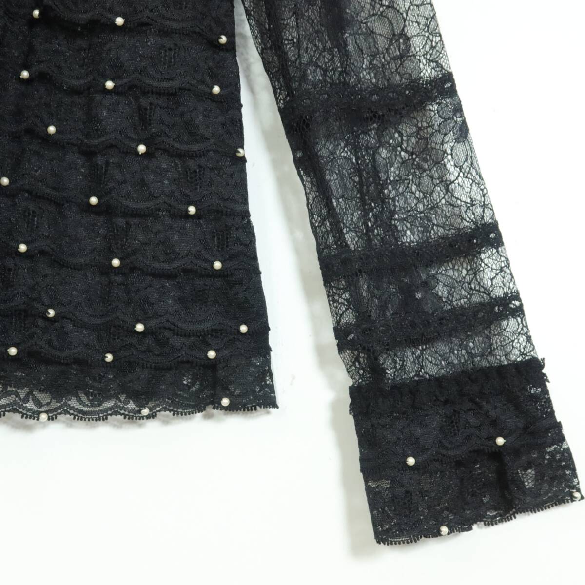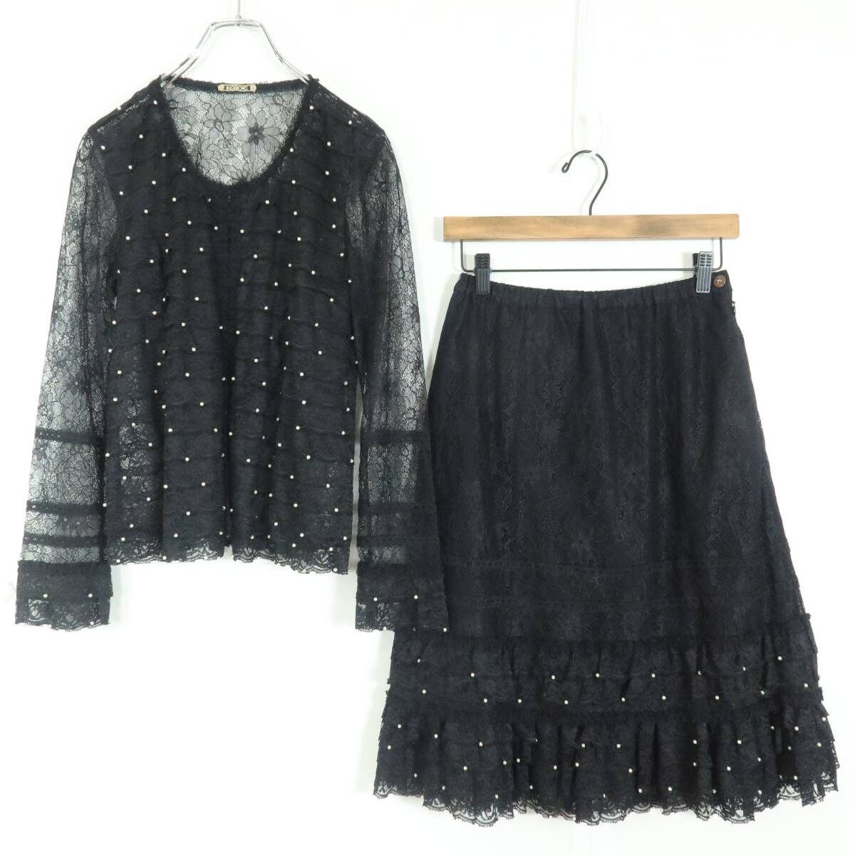 | 商品説明 | 【実寸約】肩幅37袖丈60後ろ幅47着丈54.5(cm) ウエスト64~丈62 (cm) 【サイズ表記】 3(サイズ9号) 【素材】 ナイロン65レーヨン35% 【状態】使用感少なめの美品 【デザイン】黒系 シアー感のある長袖ジャケット&スカートの上下セットです。 レースのかぶせ段々フリルがゴージャス♪ パールビーズもいっぱい♪ ジャケットは上部にかぎフックのあるボタンレスデザイン。 スカートは裏地あり。 セットでも単品でもロマンティックコーデに大活躍するアイテムです。 |