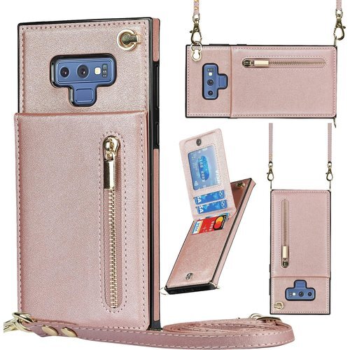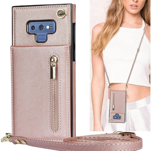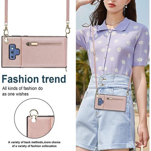 Galaxy Note9 ケース 手帳型 ショルダー クロスボディ SC-01L SCV40 対応 ノート9 スマホケース galaxy note 9 携帯 ケース サムスン ギャラクシー ノート 9 SC01L カバー NOTE 9 手帳型 カバー 財布 適用 case iCoverCase 肩がけ 首掛け 斜め掛け カードケース チェーン ファスナー型 ストラップ付き ショルダーケース クロスボディケース カード入れ スマホケース 携帯カバー ピンク 1236