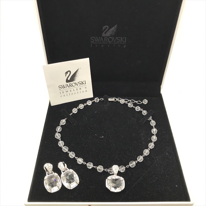 展示品 SWAROVSKI スワロフスキー クリスタル ラインストーン ネックレス イヤリング セット シルバー レディース アクセサリー c09 | |||