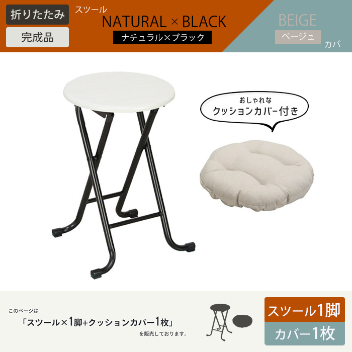 | 【折りたたみスツール】 ・ブラウン×ブラック ・ナチュラル×ホワイト ・ナチュラル×ブラック 【クッションカバー】 ・ベージュ ・ブルー ・チェック |