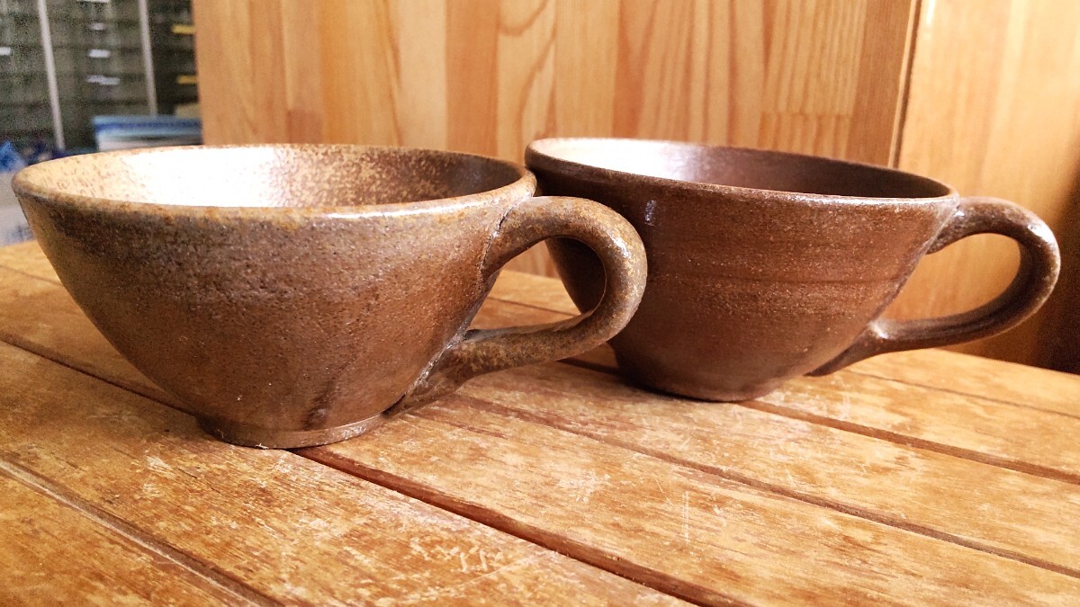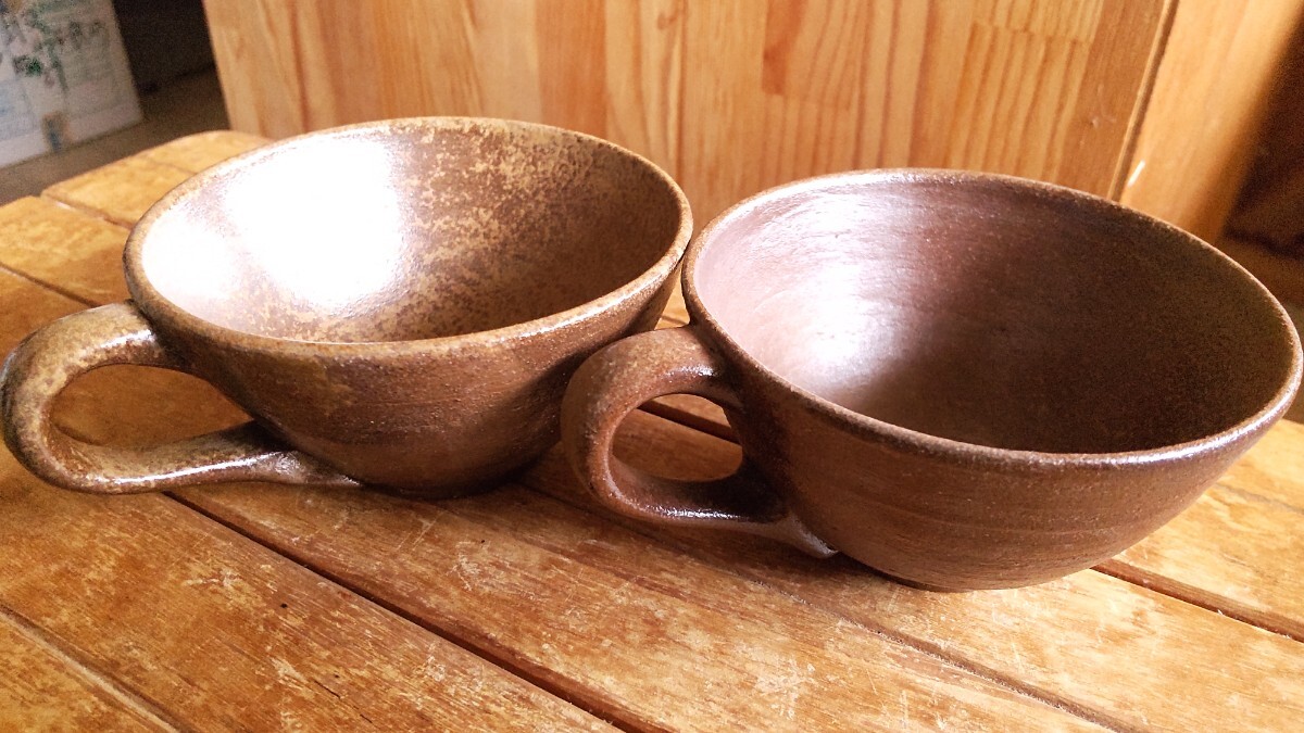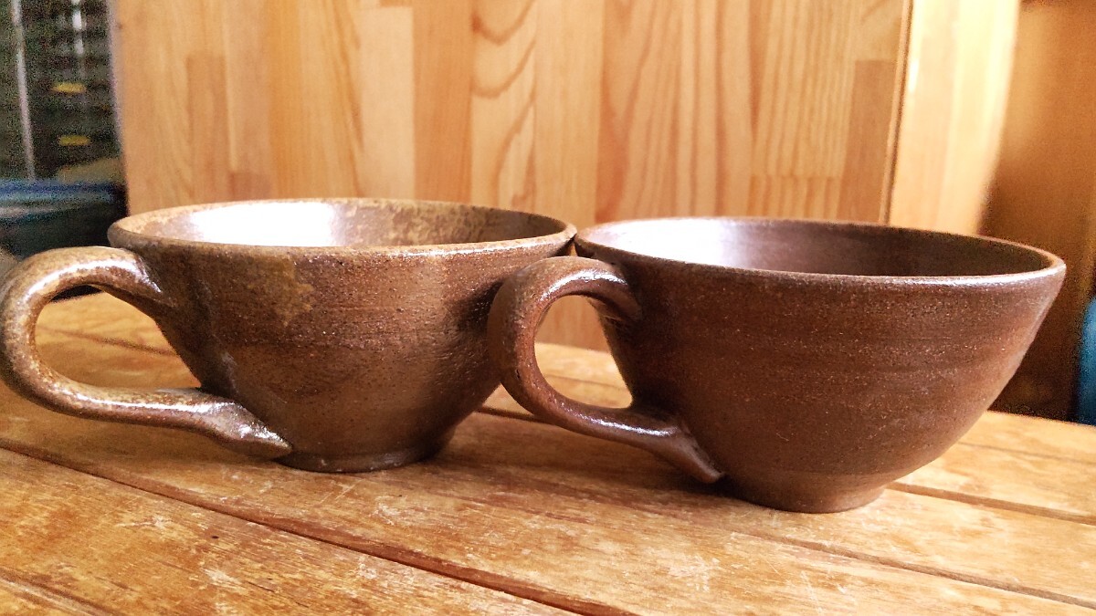 ハンドメイドのカップセットです。備前焼だと思われます。