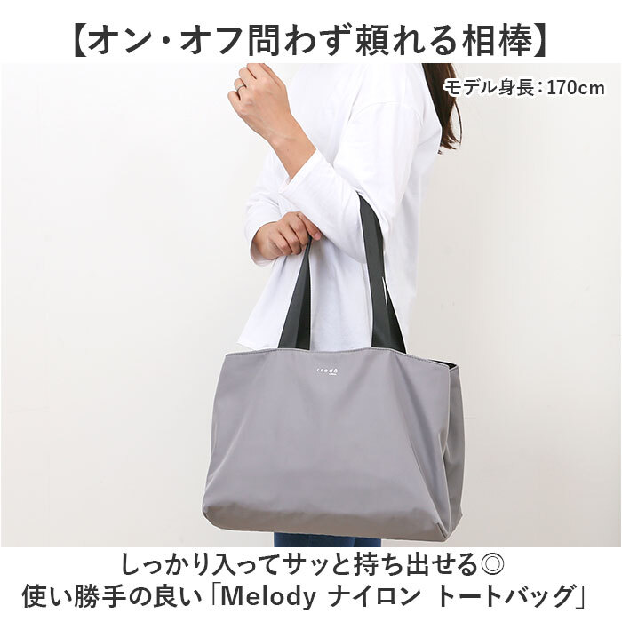 | 商品説明 | ・・【オン・オフ問わず頼れる相棒】 ・しっかり入ってサッと持ち出せる◎使い勝手の良い「Melody ナイロン トートバッグ」。 ・【軽やかで手軽に使えるナイロン製】 ・サラッと軽いナイロントート。耐久性があり外的影響を受けにくく、お手入れも簡単。 ・【両手が空いて移動がラクラク】 ・ハンドルは肩に掛けられるよう長めに設計。両手を自由に使える&荷物が重くなっても大丈夫。 ・【整理整頓しやすい3層構造】 ・中央ルームに加え、前後にポケットを配置。荷物を定位置に収めやすい◎ ・【ガバっと開くダブルファスナー】 ・中央ルームは、左右どちらからもオープン。中身を確認しやすく、出し入れスムーズ。 ・【A4対応でざっくりひとまとめ】 ・A4がぴったり収まり、ポーチやドリンクボトルなどもIN。こぼれ落ちにくいササマチ付き。 ・【マグネット式でワンタッチ開閉】 ・前後のポケットは、力いらずで簡単◎出し入れしやすく、閉じれば中身の飛び出しもガード。 ・【小物などがスマートにまとまる】 ・B5が収まるサイズ感で、厚みのない小物を。それぞれに内ポケット付き、小物も迷子知らず。 ・【程よく安定した状態で持ち運び可能】 ・ソフトな底板を内蔵。荷物を入れた時も、適度な安定感をキープ。 ・【お揃いで持てるユニセックス仕様】 ・性別や年代問わず持ちやすい、シンプルなデザイン。どんなシーンでも使える落ち着いたカラー! ・【ポケット仕様】 ・前面:マグネットポケット×1(内側にオープンポケット×1) ・背面:マグネットポケット×1(内側にファスナーポケット×1) |