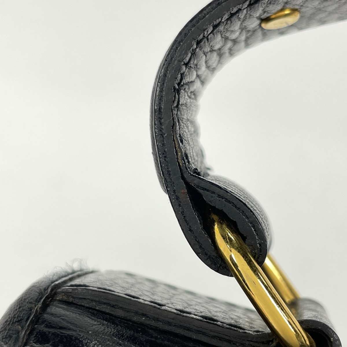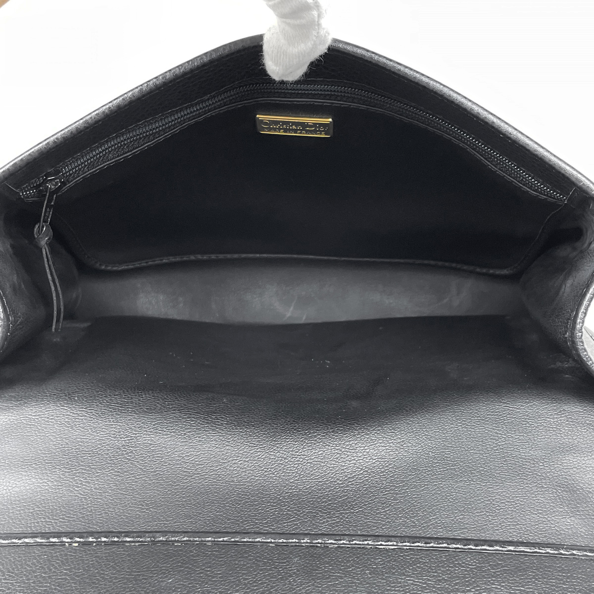 | 《全体》型崩れ、生活臭、スレ、キズ、シワ、汚れ 《内側》変色、色ムラ、押し跡 《フラップ根元》亀裂 《フチ》繊維の付着 《外ポケット内側》変色 《ハンドル》へたれ、剥がれ、繊維の付着 《ショルダーストラップ》へたれ、剥がれ、繊維の付着 《金具》小キズ、くすみ 保存袋に劣化あり。 |